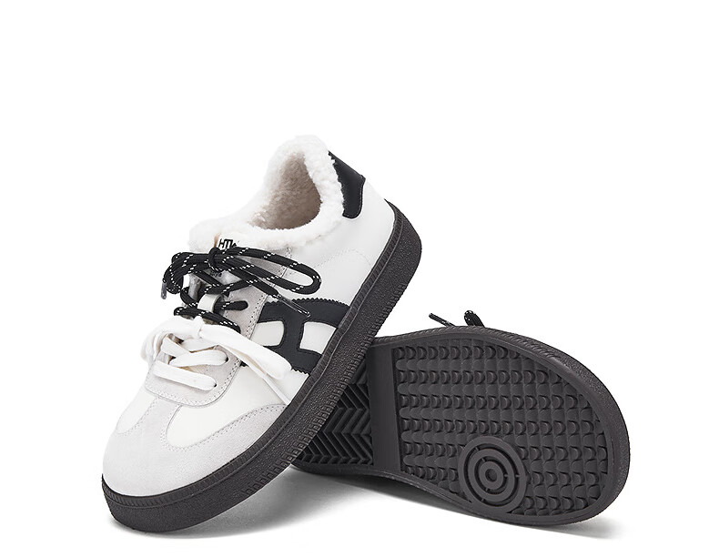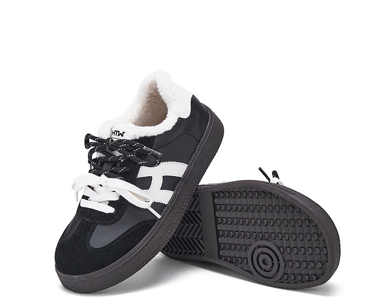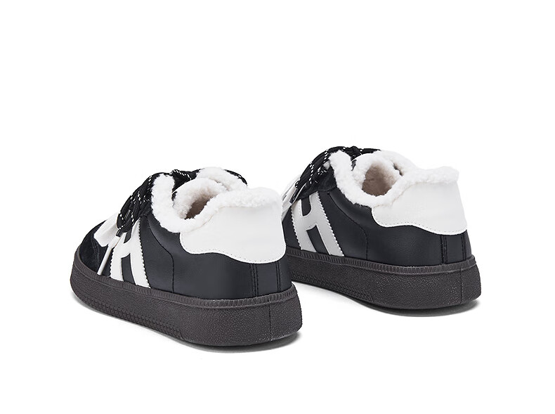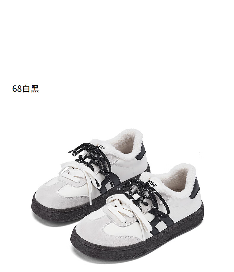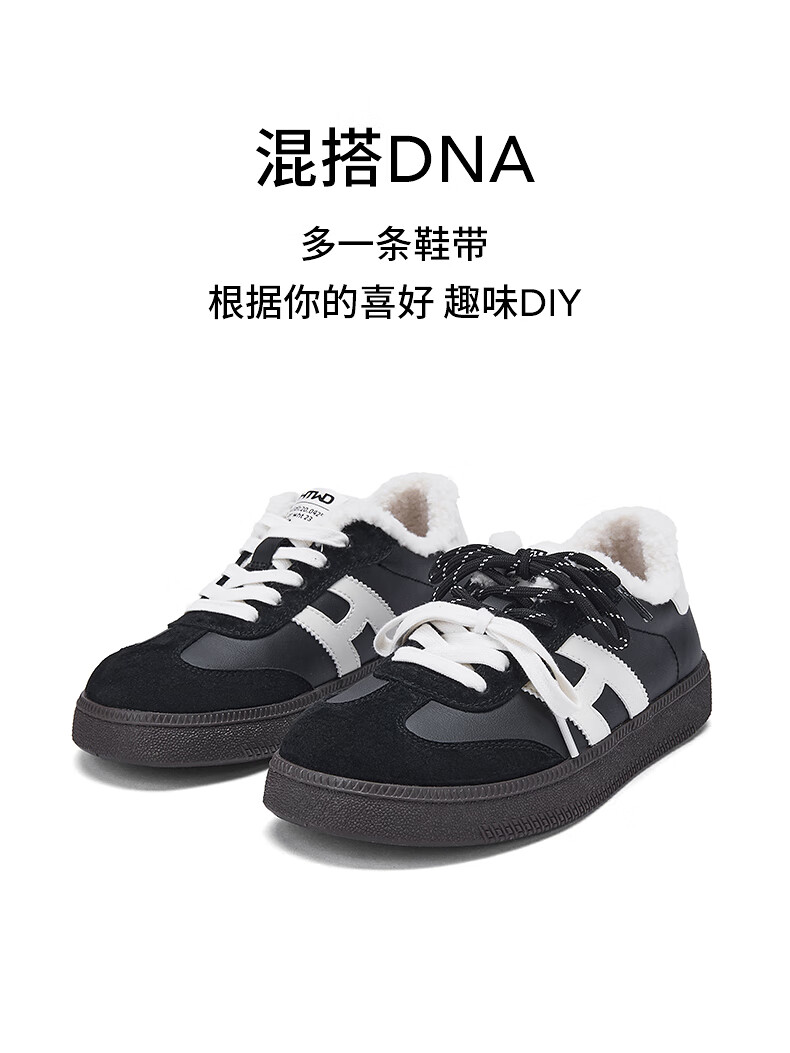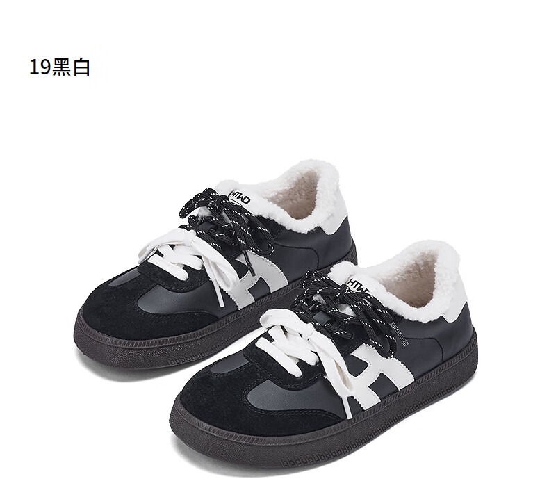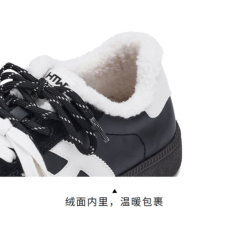 热风加绒德训鞋女2025年冬季新款保暖休闲鞋平底板鞋运动女鞋子 19黑白 34
