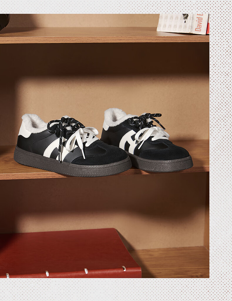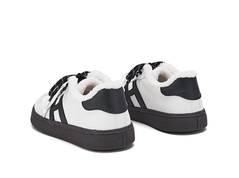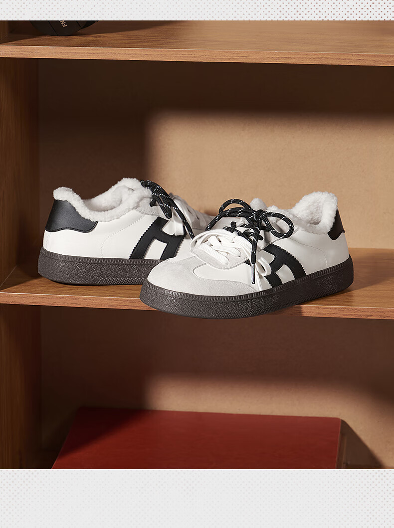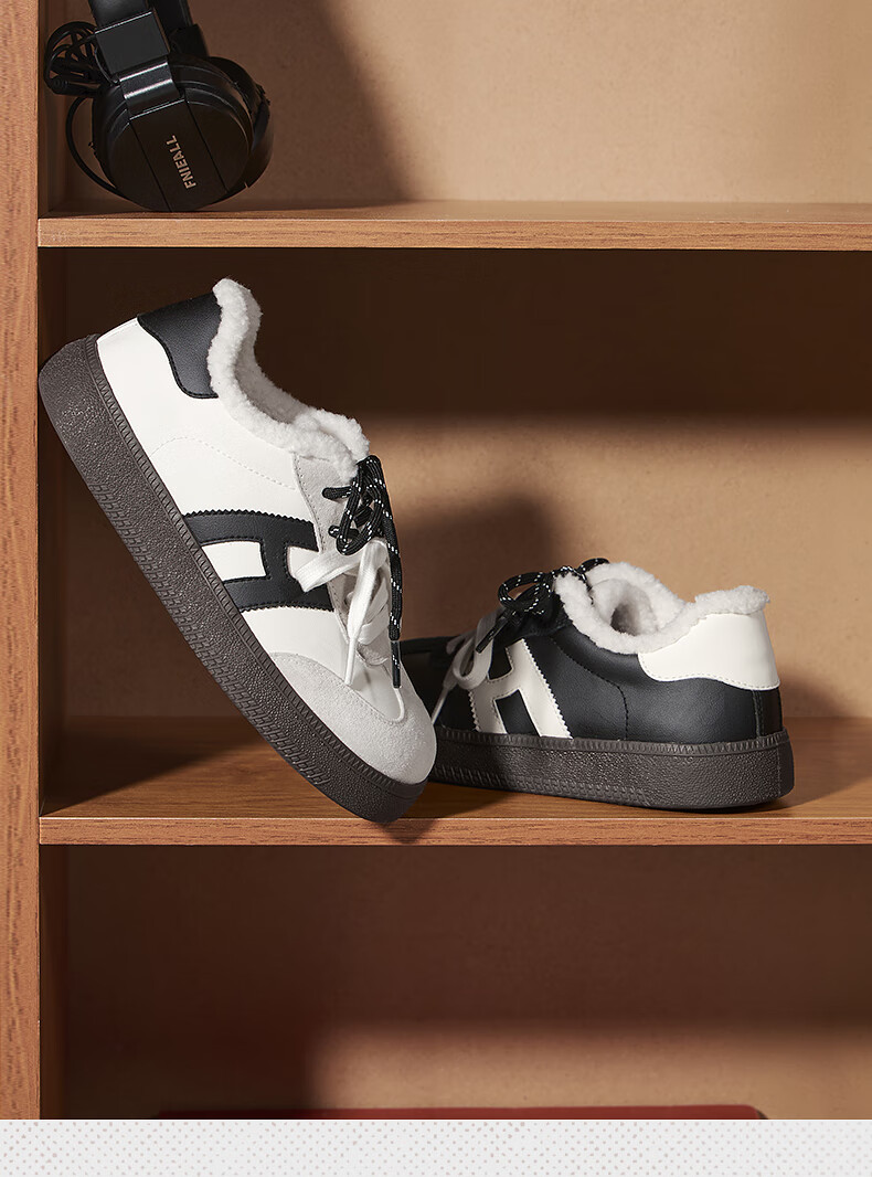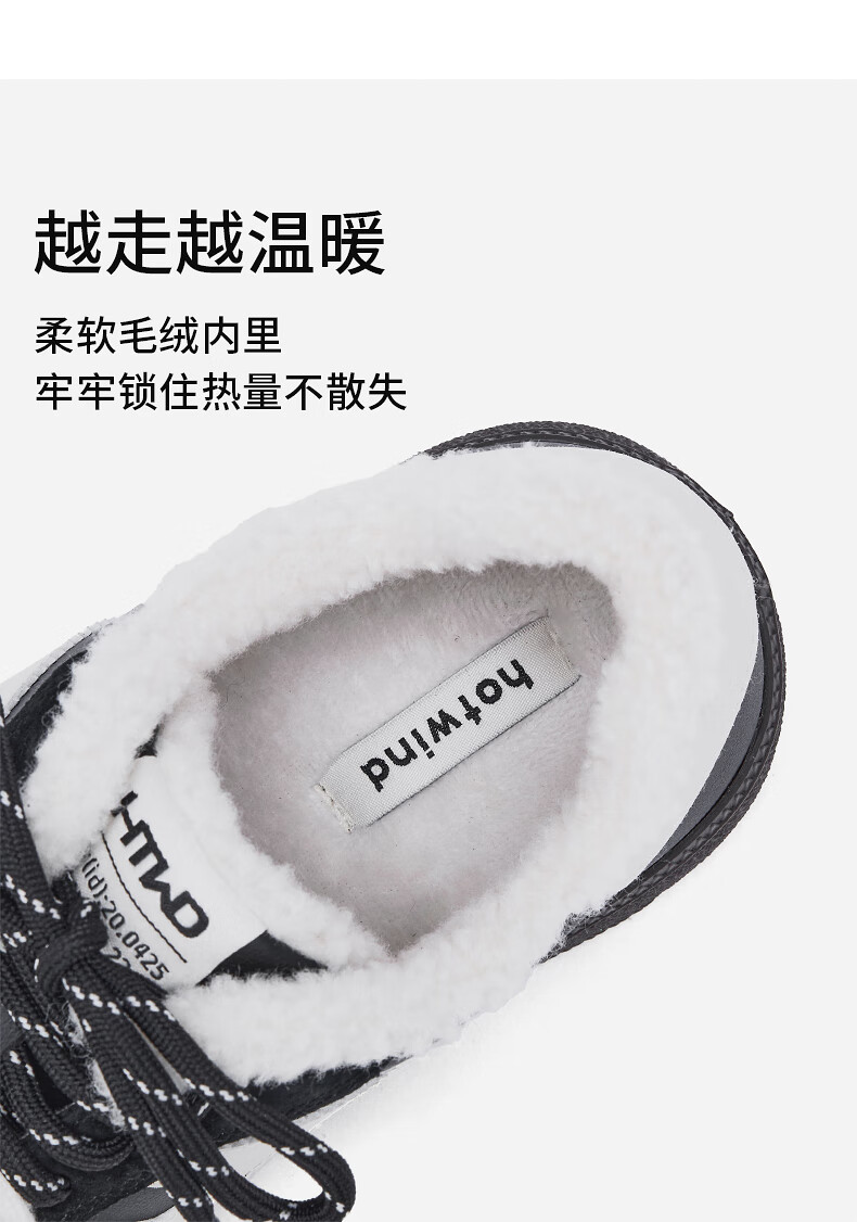 热风加绒德训鞋女2025年冬季新款保暖休闲鞋平底板鞋运动女鞋子 19黑白 34