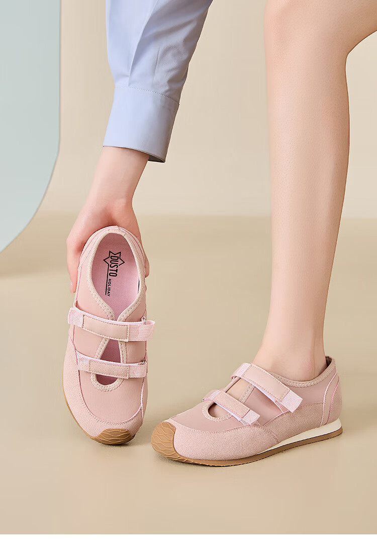 大东(dusto)软底透气德训鞋2025夏季新款小众时尚百搭户外休闲运动鞋0651 粉色 35