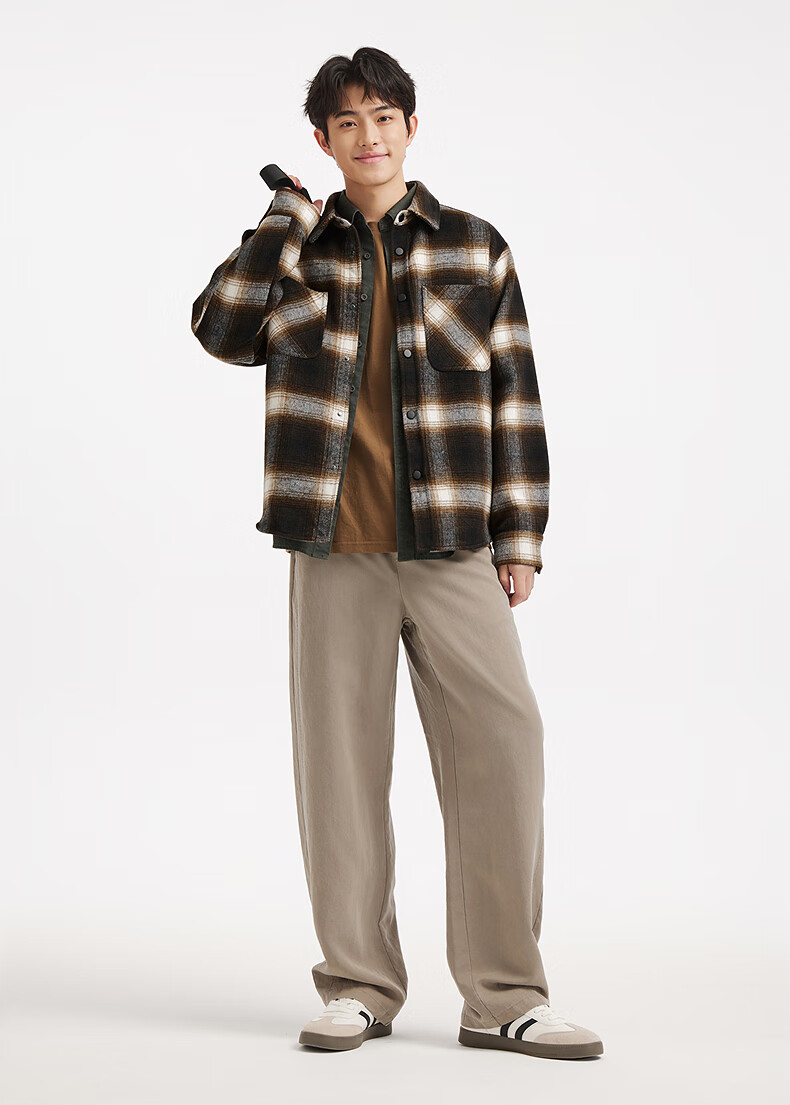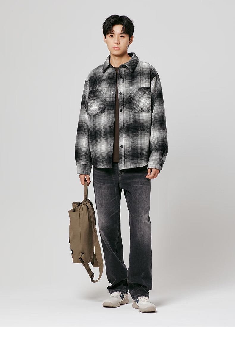 热风2025年冬季新款男士格纹休闲夹克 19黑白 M