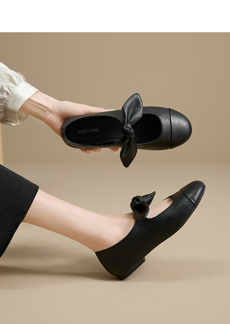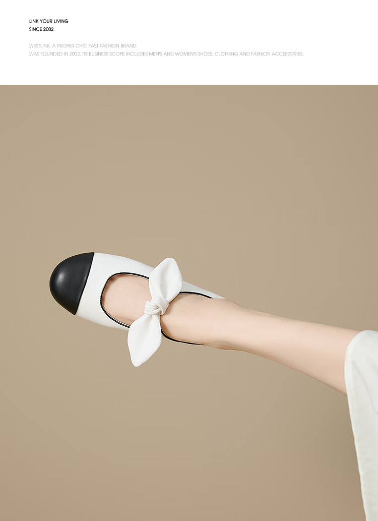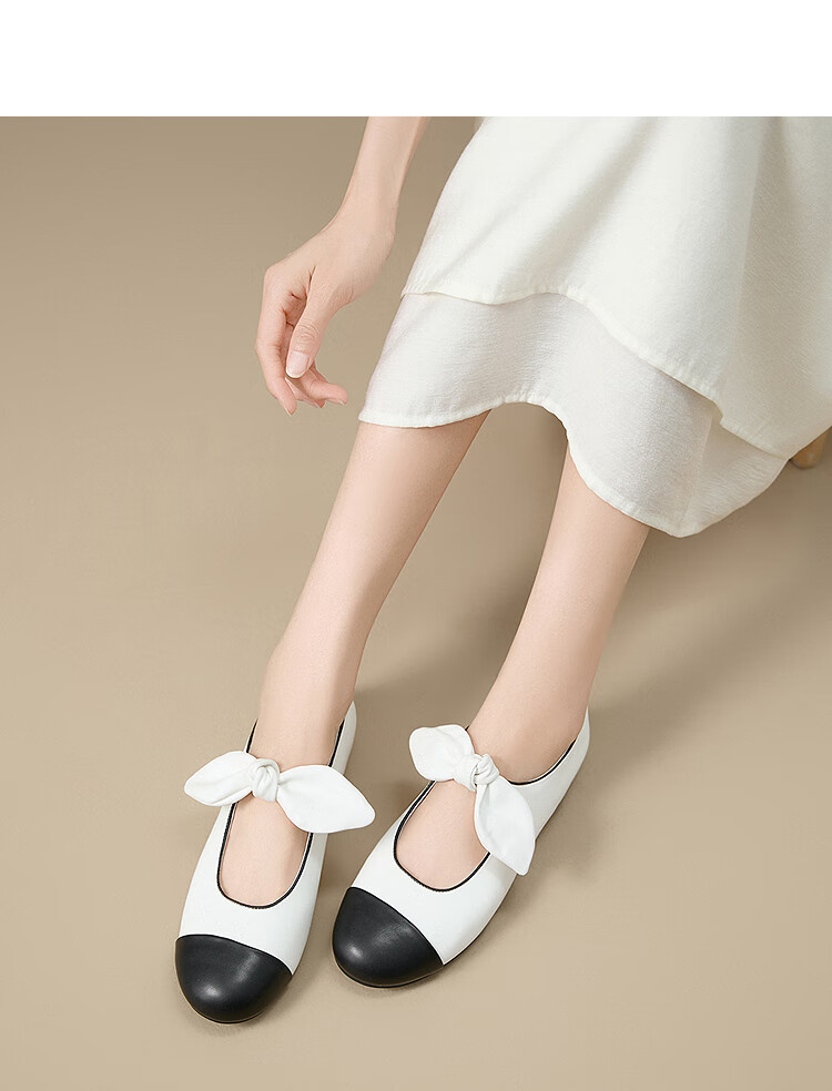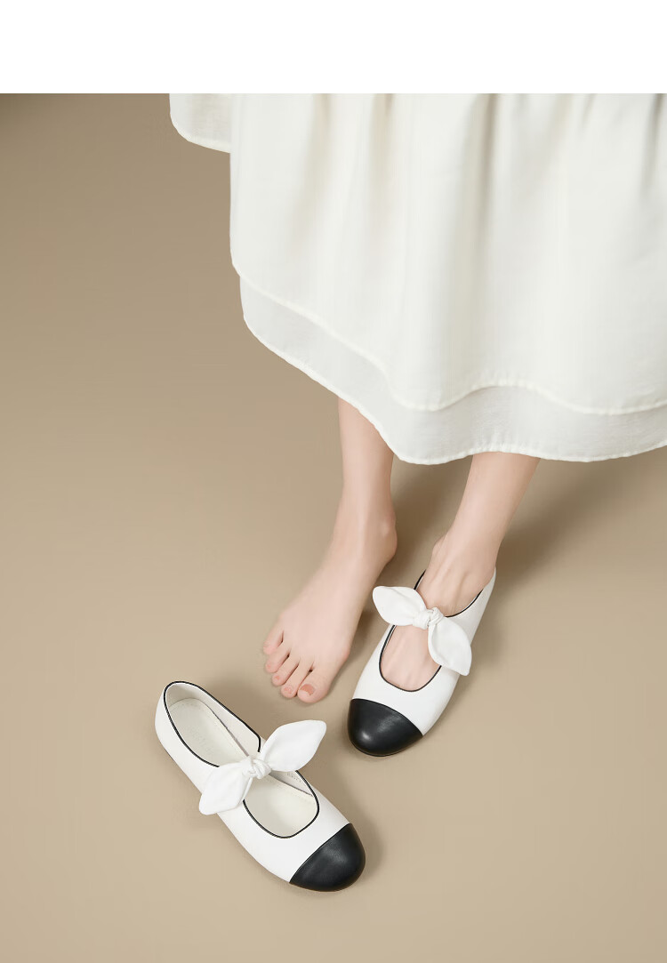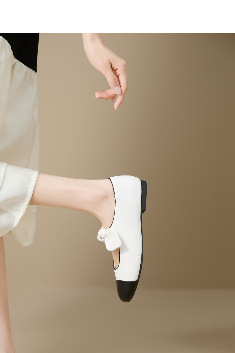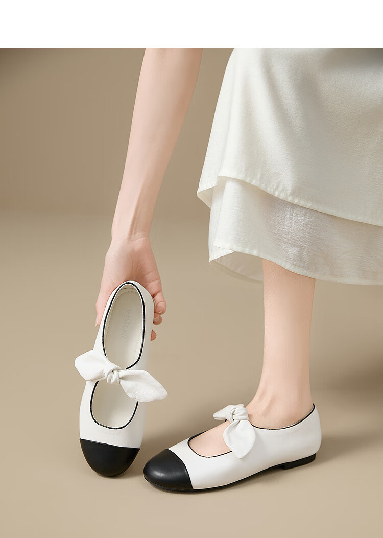 西遇小香风单鞋女2025新款秋季法式蝴蝶结玛丽珍鞋浅口软底平底鞋 白色 35 (225)