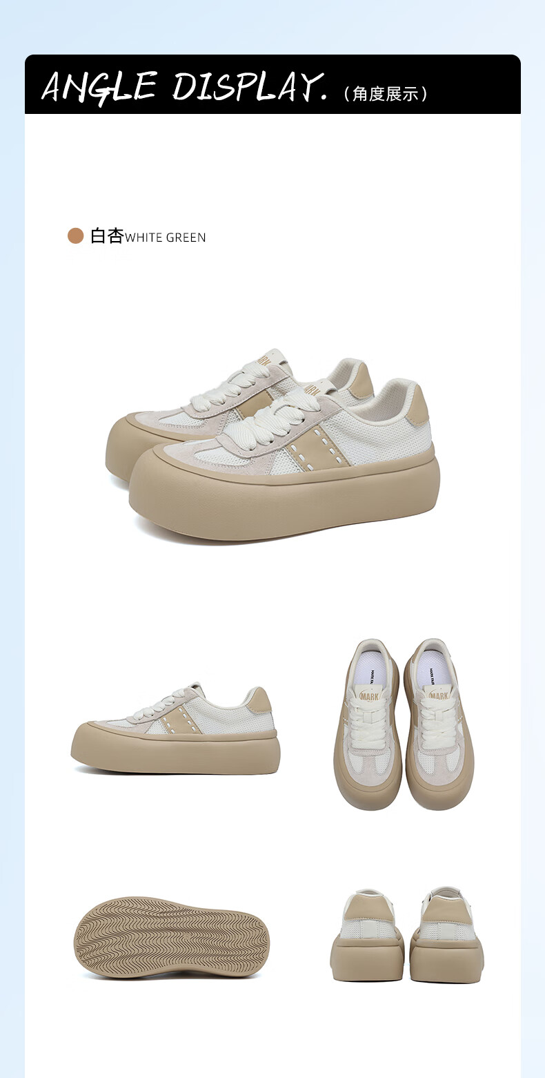马克华菲德训鞋女2025夏季新款厚底增高透气运动鞋百搭休闲板鞋 白绿 37