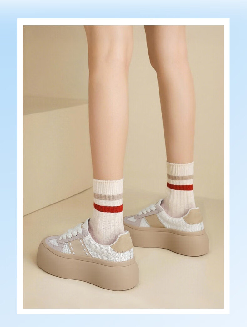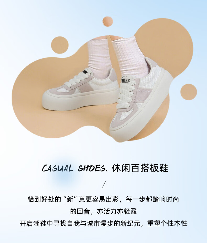 马克华菲厚底德训鞋女2025夏季新款透气增高休闲板鞋女小白鞋 白灰 36