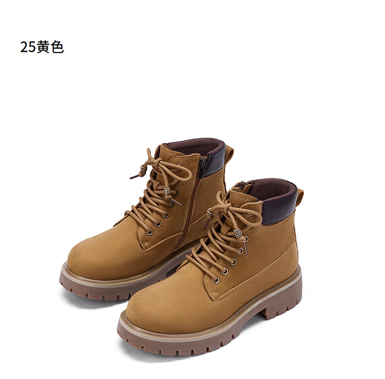 热风男鞋马丁靴2025年秋季新款男士时尚休闲短靴登山工装靴户外大黄靴 25黄色 牛头层皮革 44