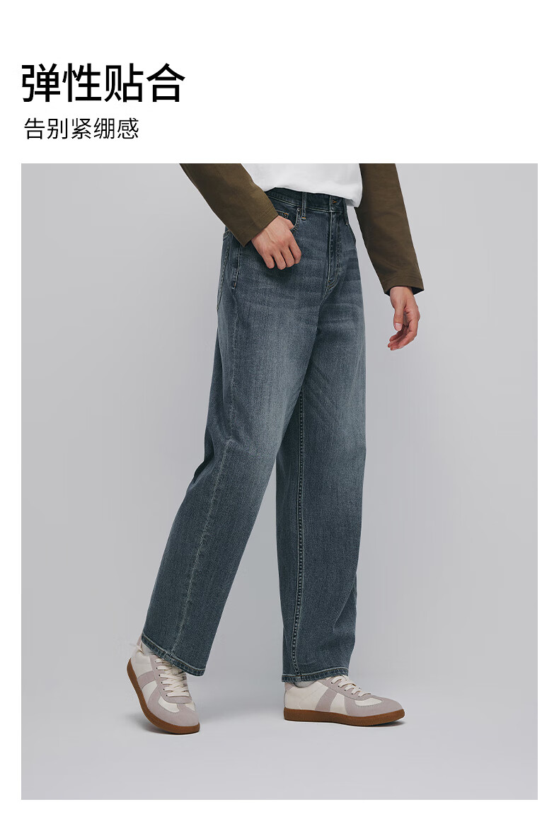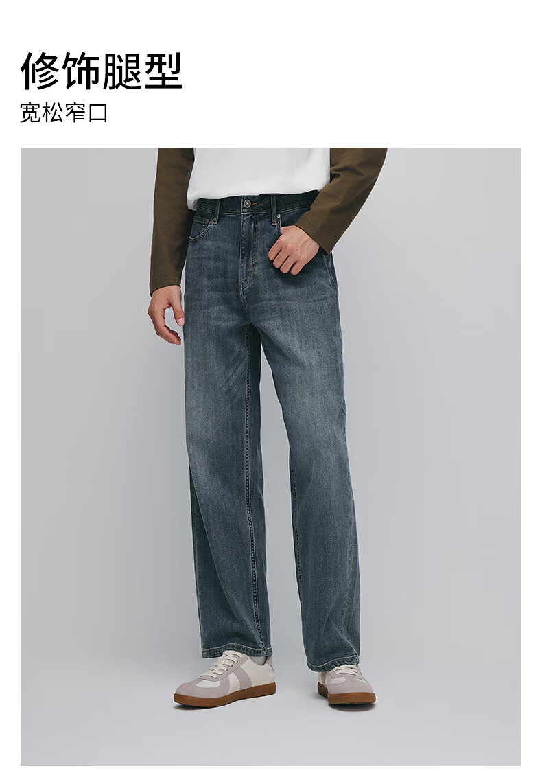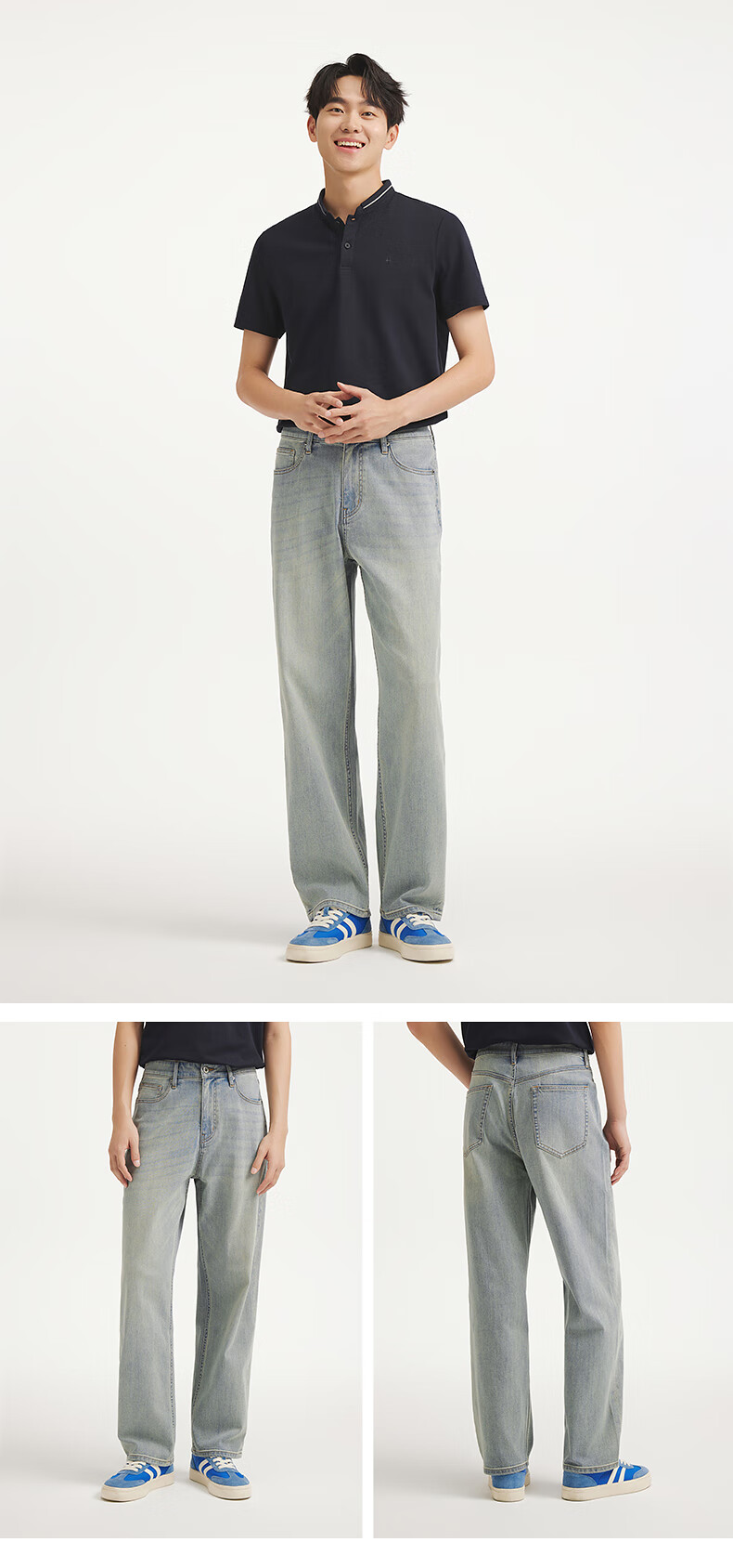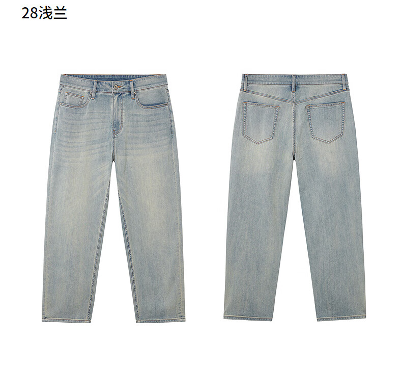 热风男士牛仔裤2025年秋季新款宽松舒适美式锥型直筒百搭休闲牛仔裤 28浅兰 29