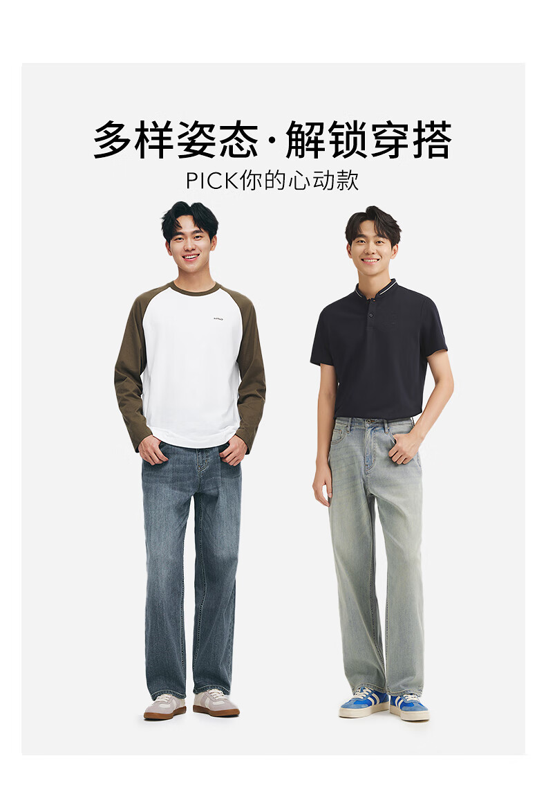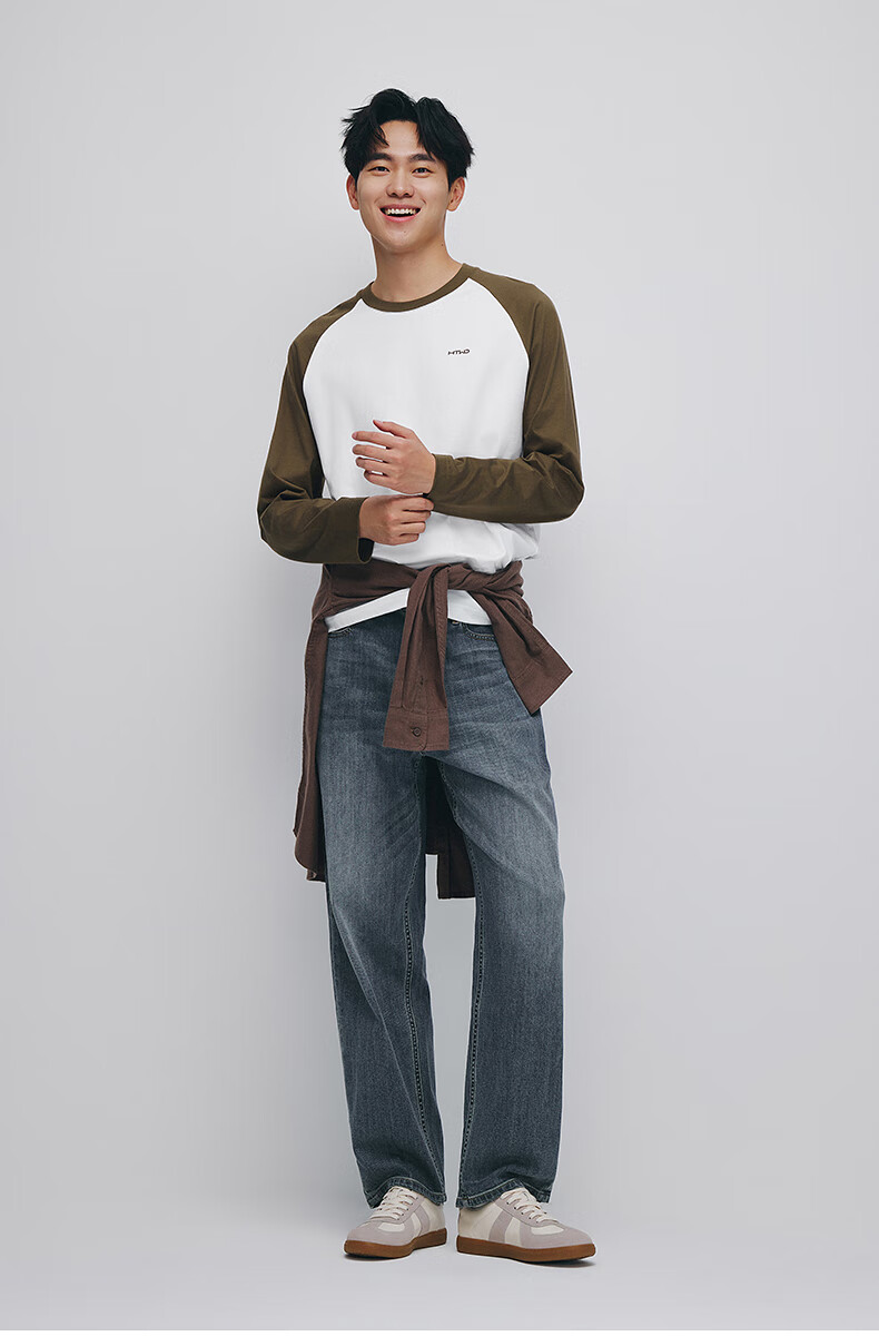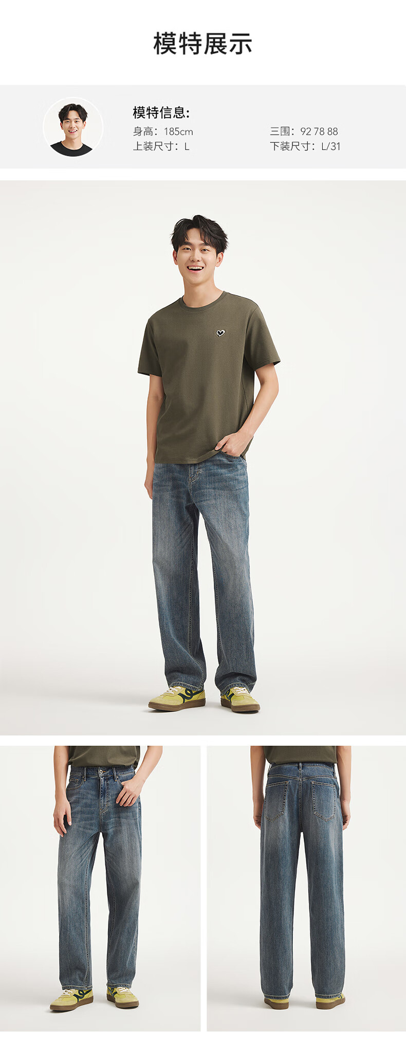 热风男士牛仔裤2025年秋季新款宽松舒适美式锥型直筒百搭休闲牛仔裤 28浅兰 29