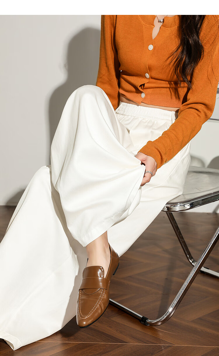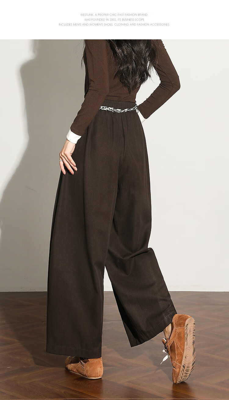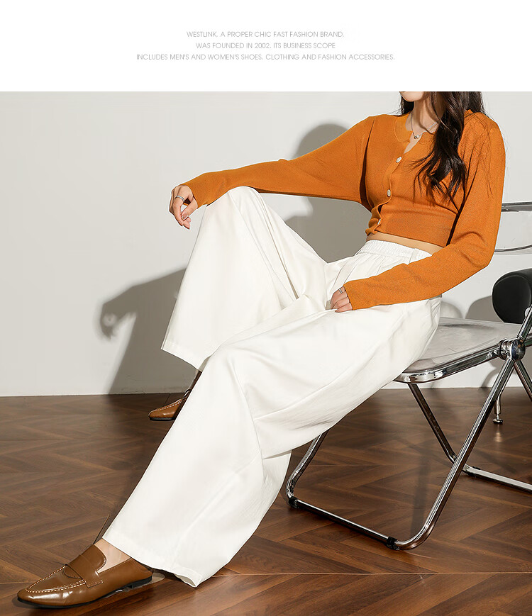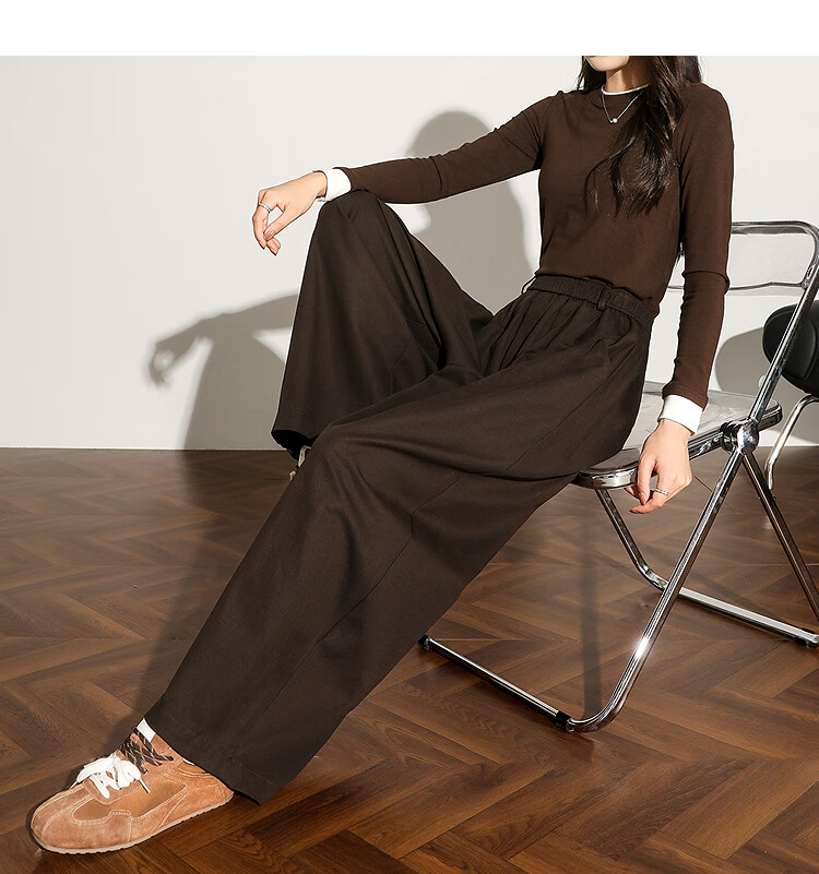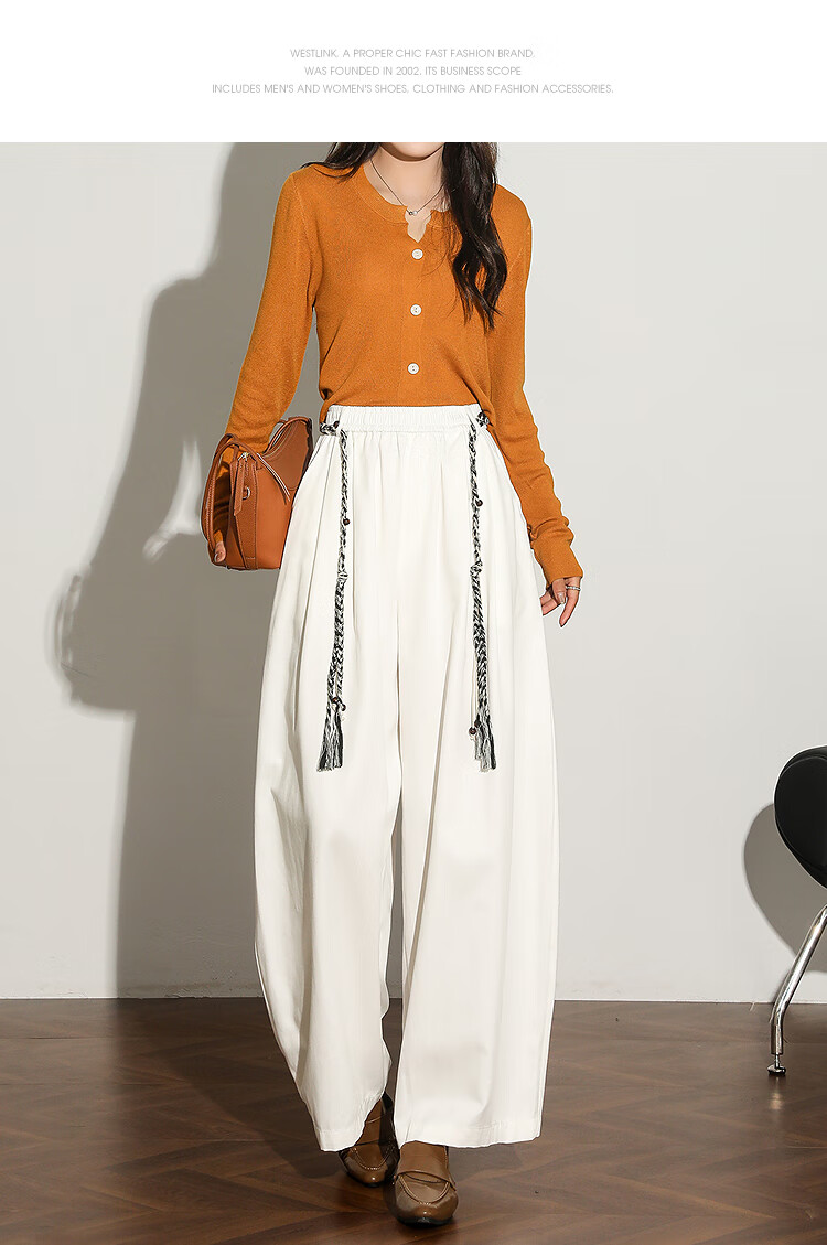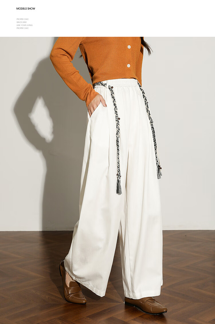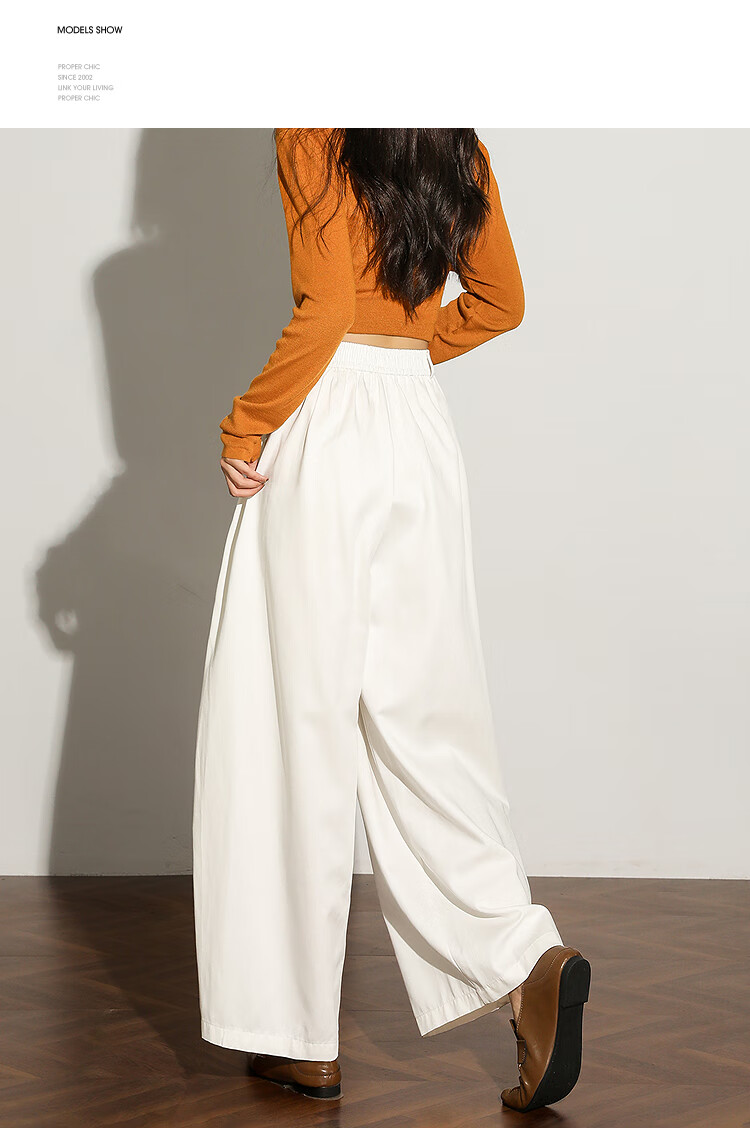 西遇韩系气质百搭直筒阔腿裤女2025秋季新款松紧腰宽松显瘦休闲裤 白色 M (27)