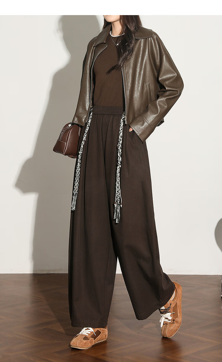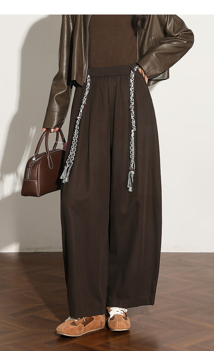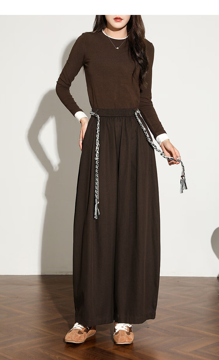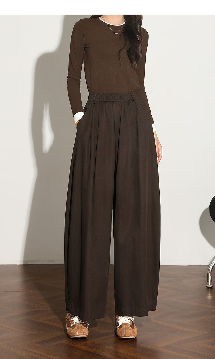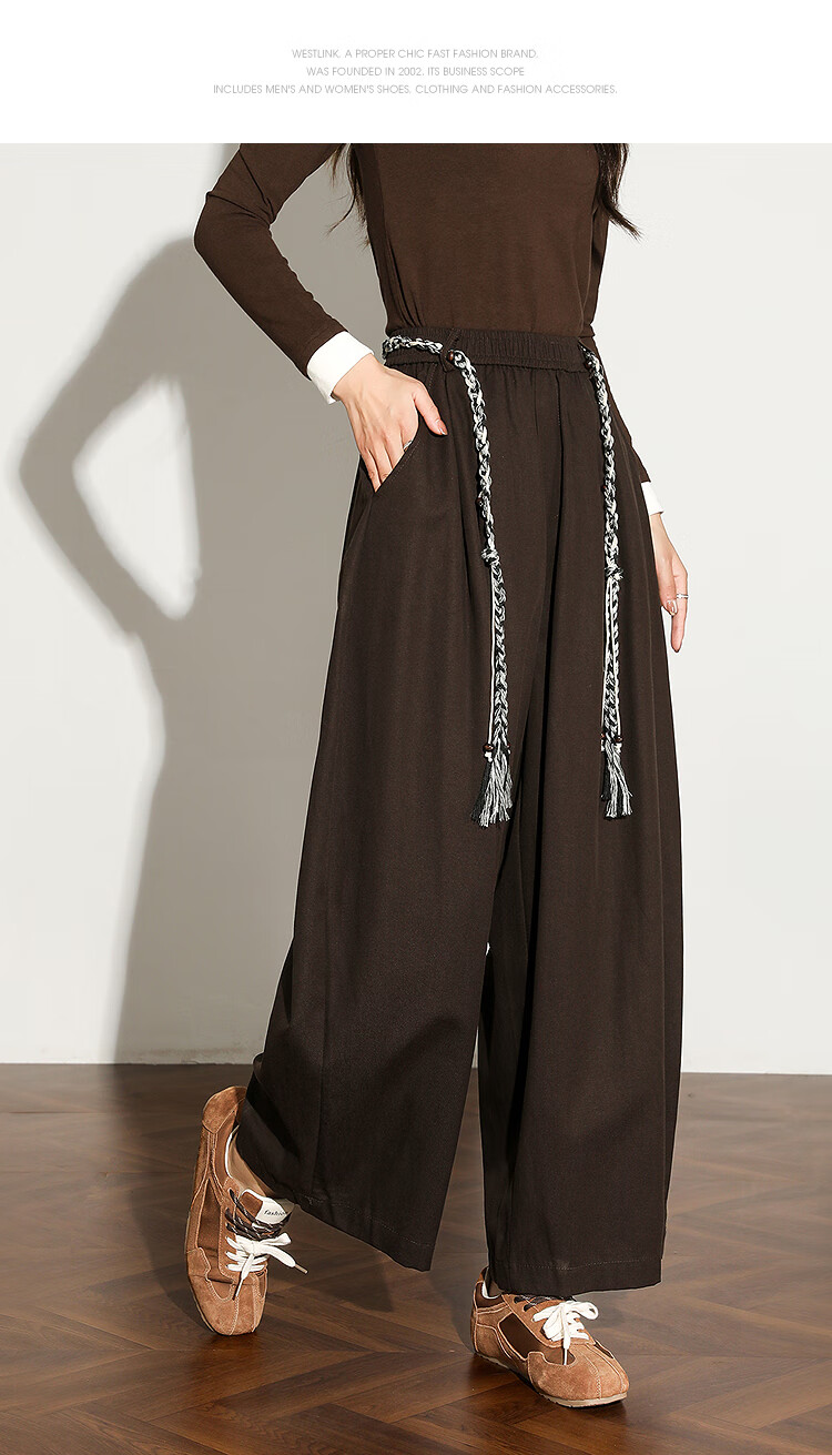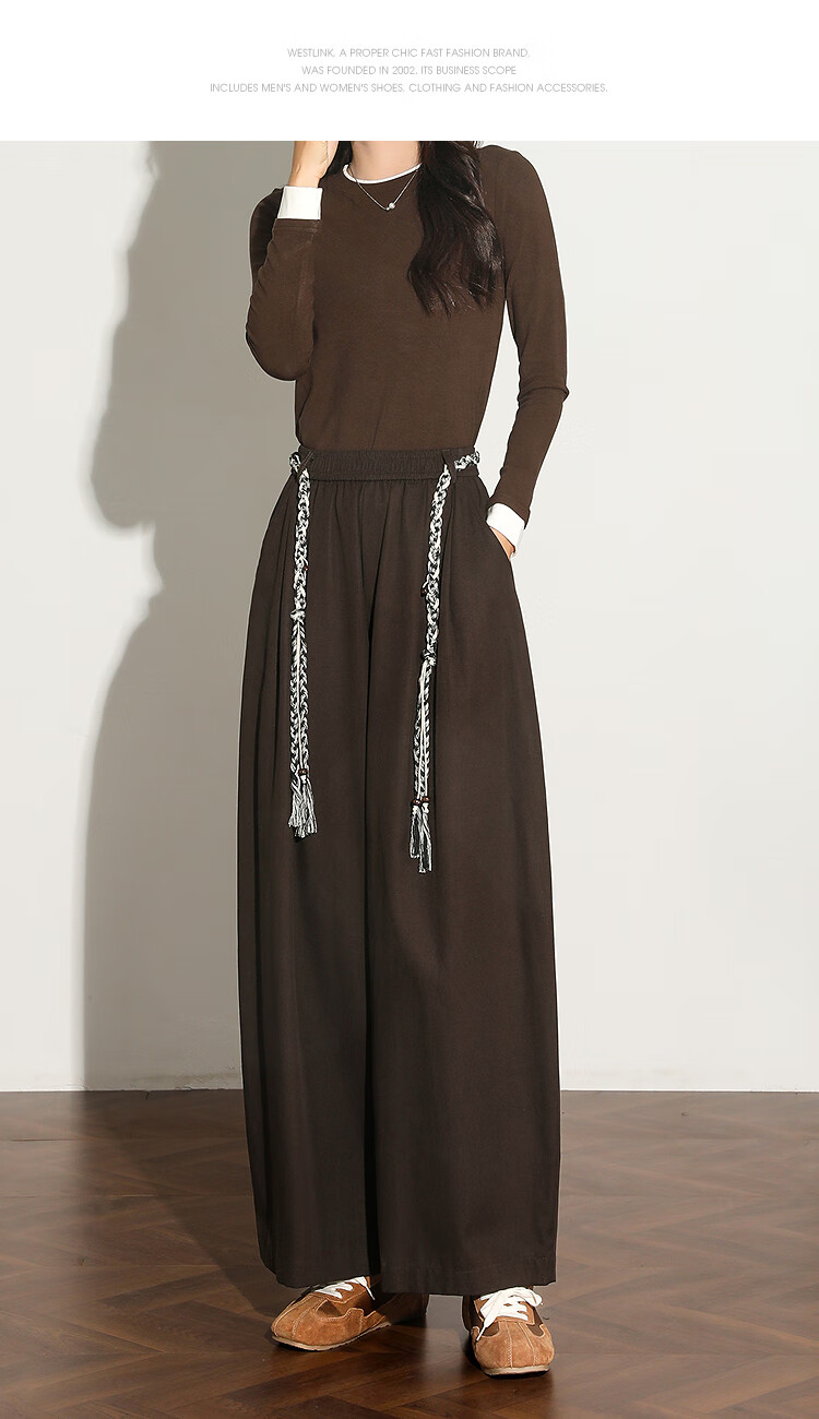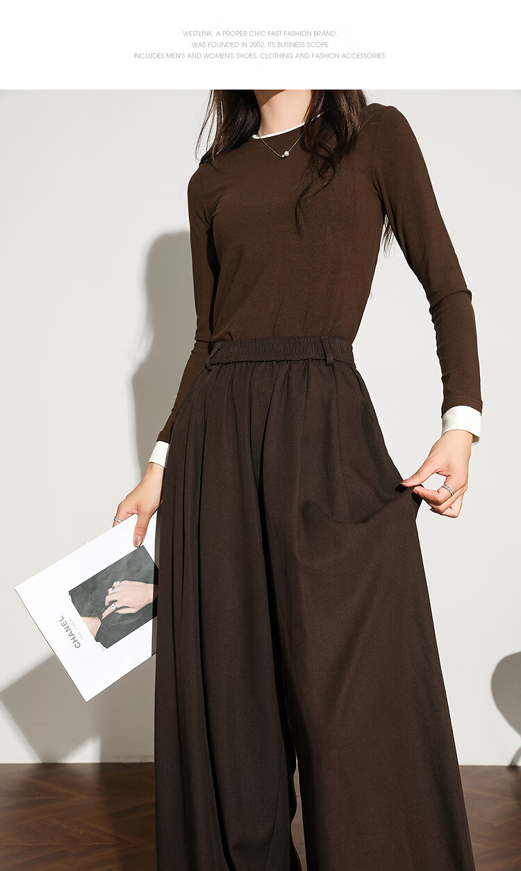 西遇韩系气质百搭直筒阔腿裤女2025秋季新款松紧腰宽松显瘦休闲裤 白色 M (27)