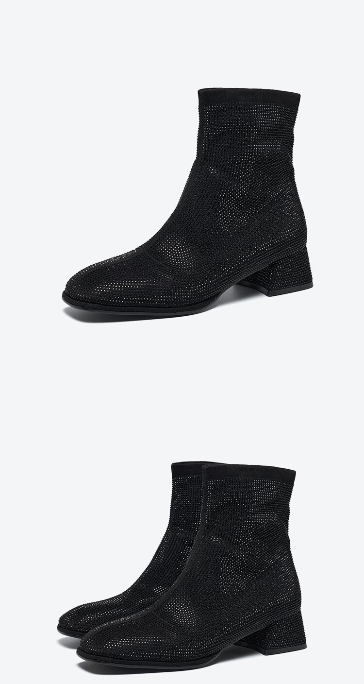 星期六(St&Sat)女靴冬季新款时尚简约通勤方头粗跟弹力靴短靴 黑色 37