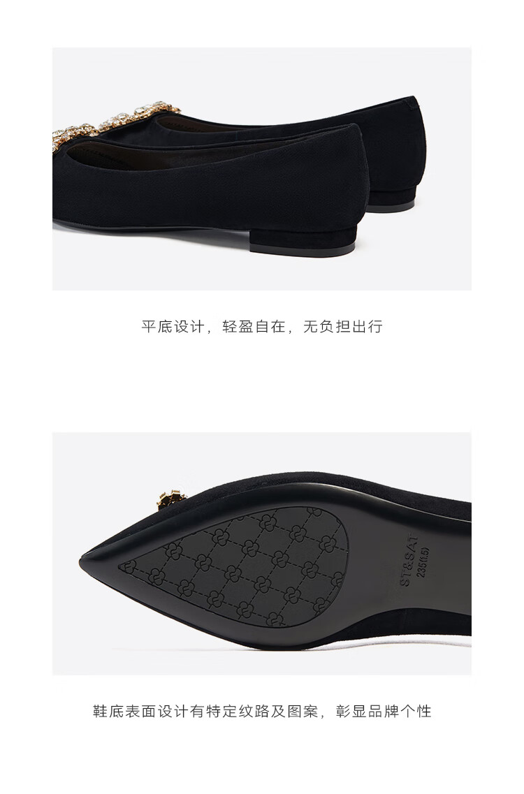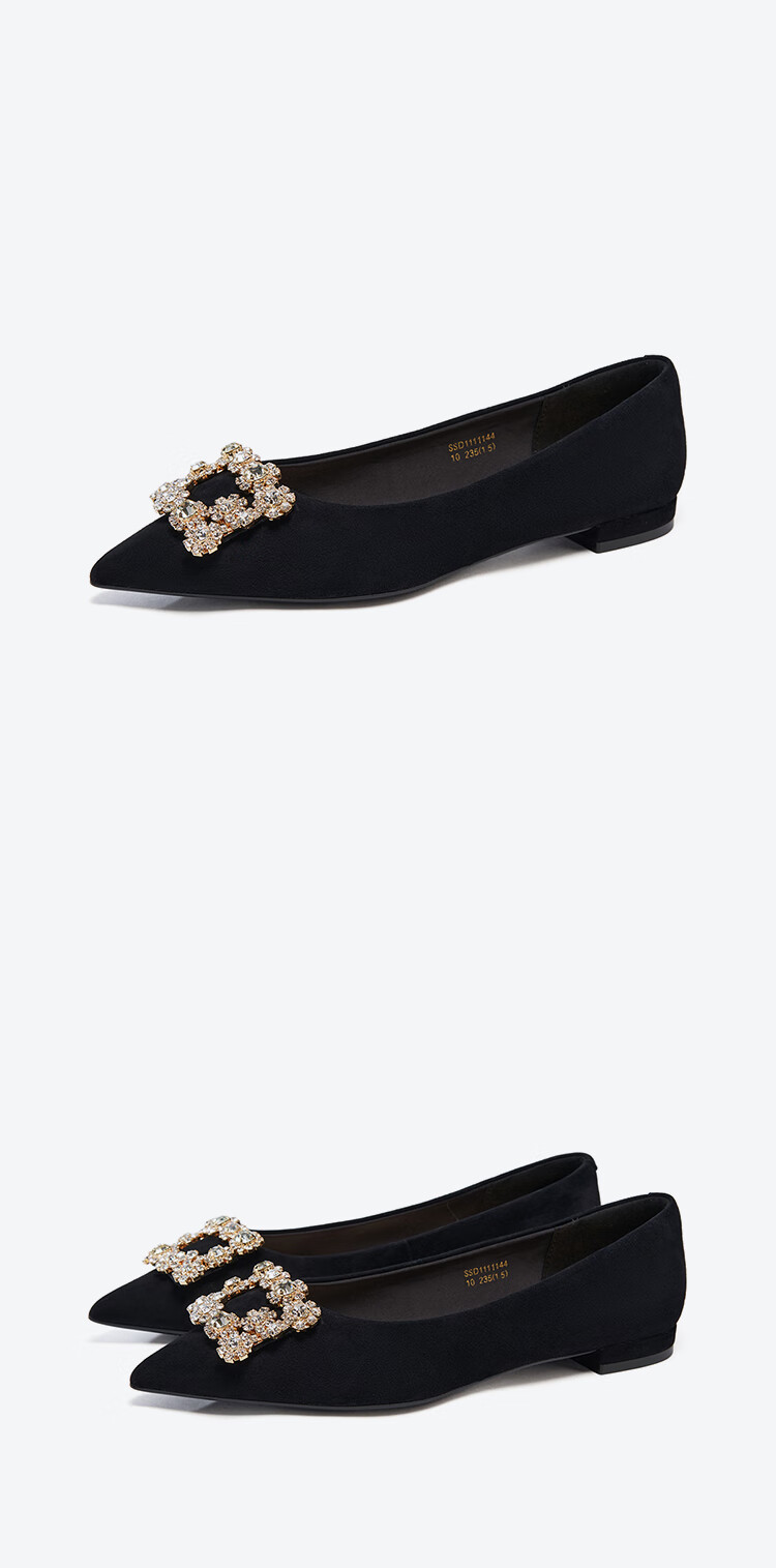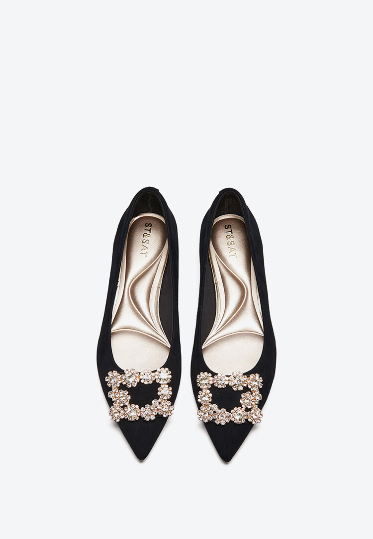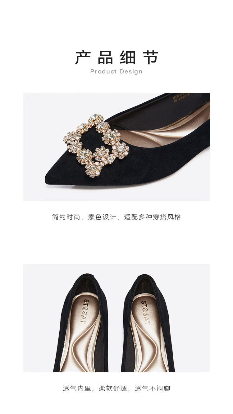 星期六(St&Sat)女鞋秋季新款时尚闪钻方扣约会通勤尖头低跟单鞋 黑色 36