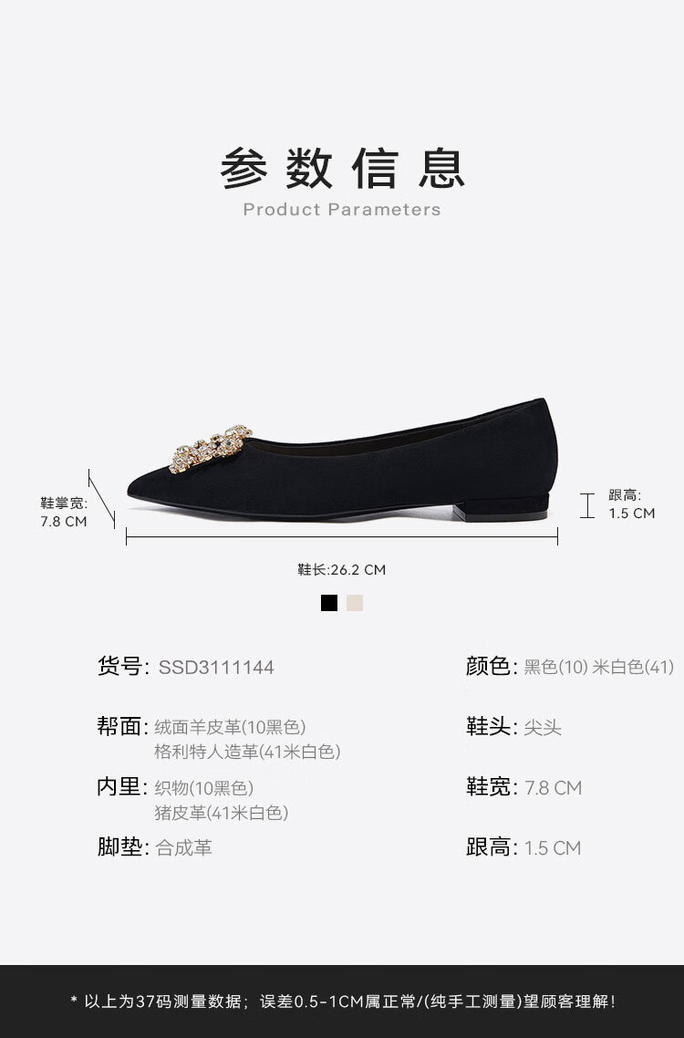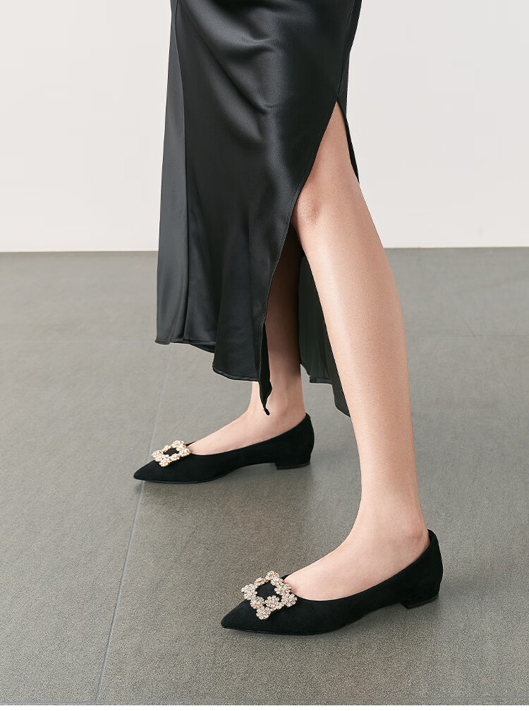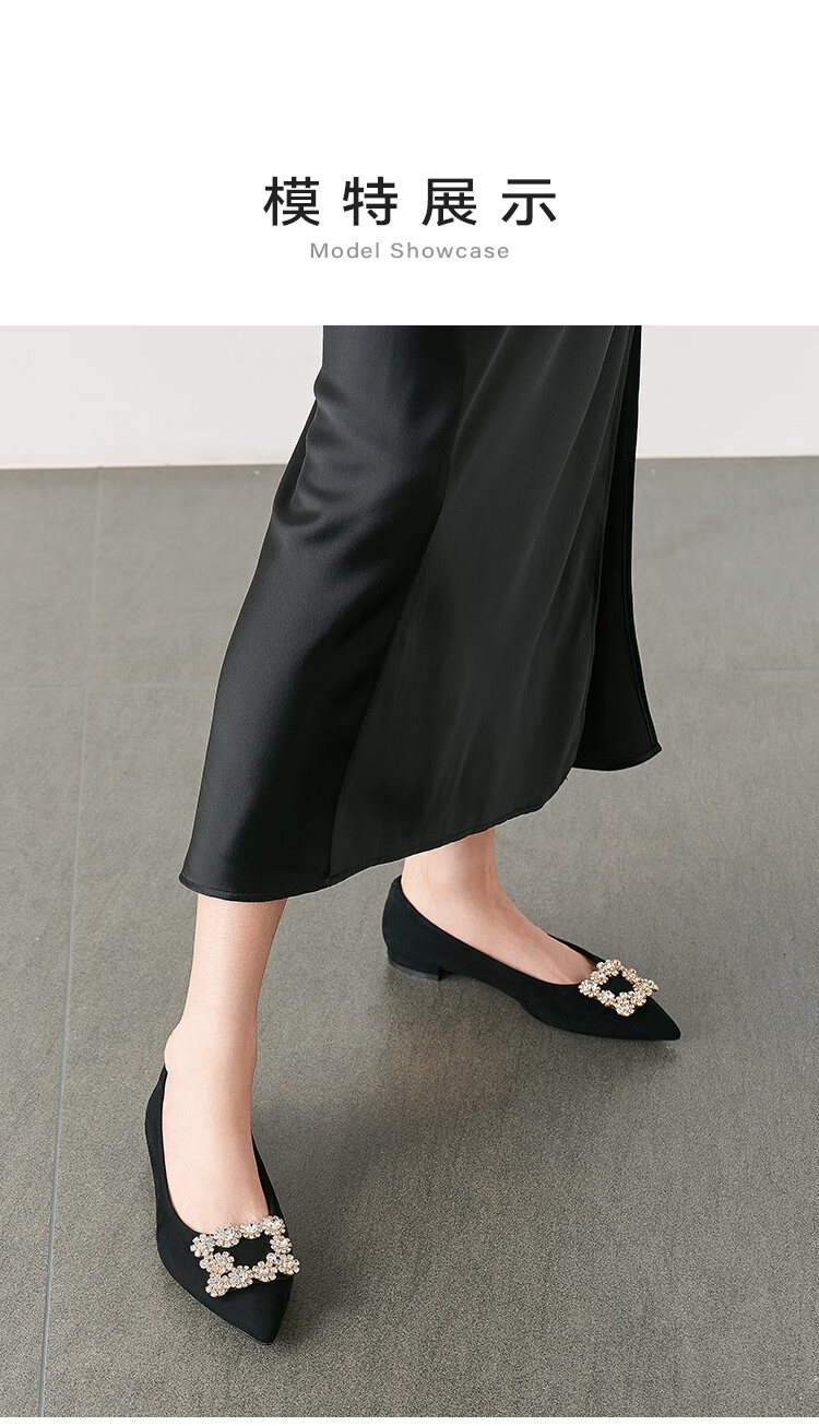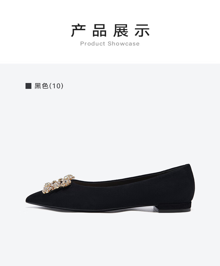 星期六(St&Sat)女鞋秋季新款时尚闪钻方扣约会通勤尖头低跟单鞋 黑色 36