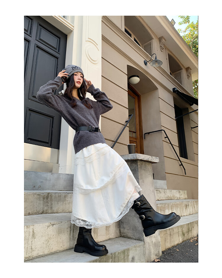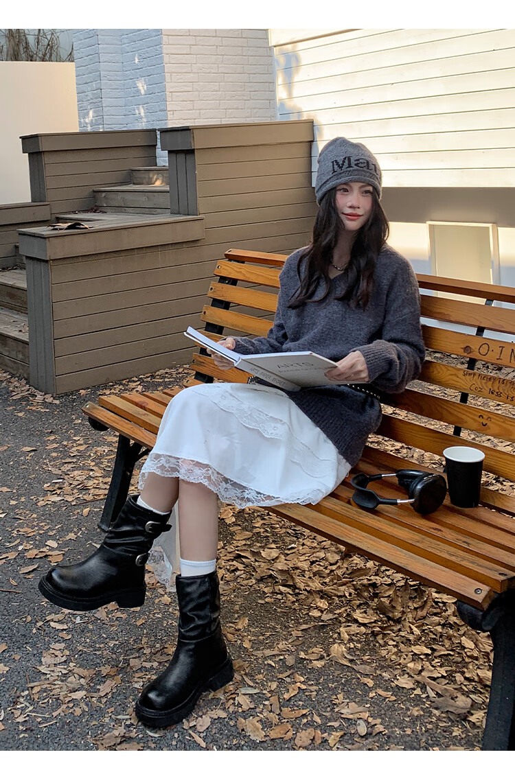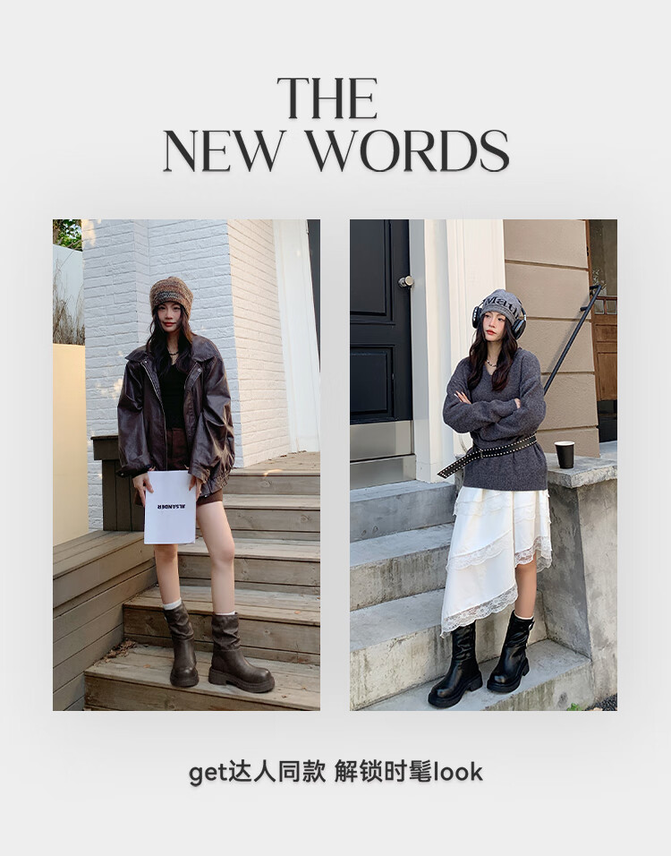 热风【迪士尼系列】复古西部靴女靴2025年冬季新款美拉德休闲时装靴子 08杏色 37