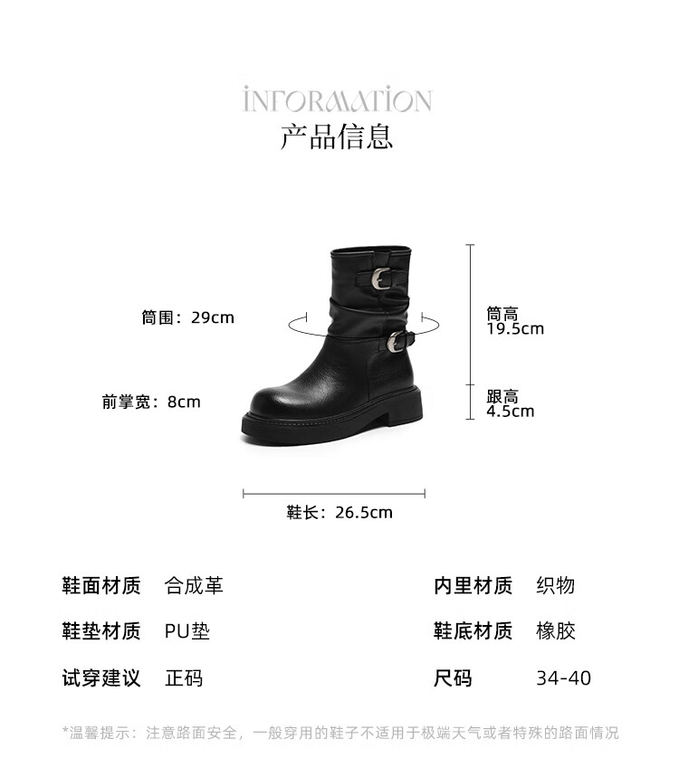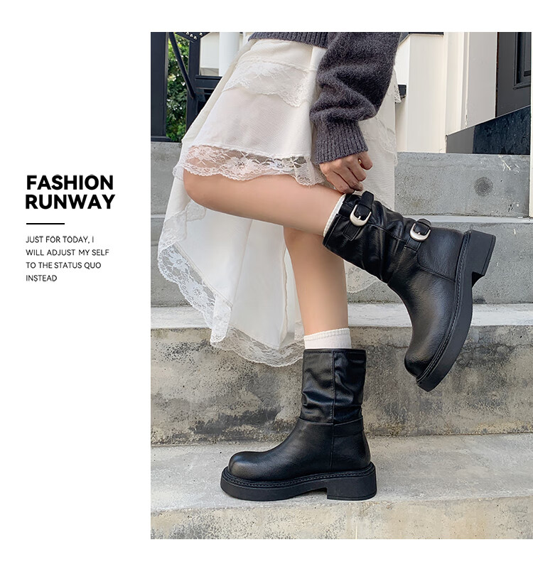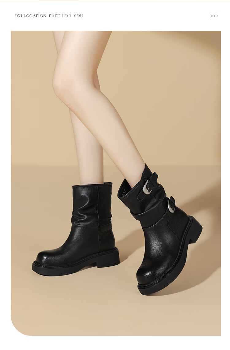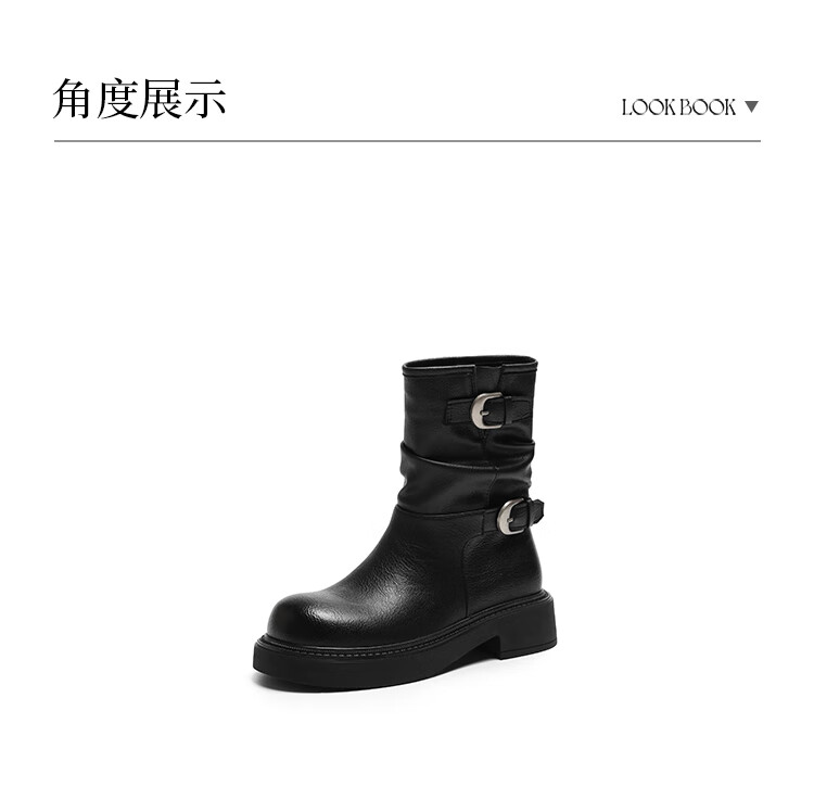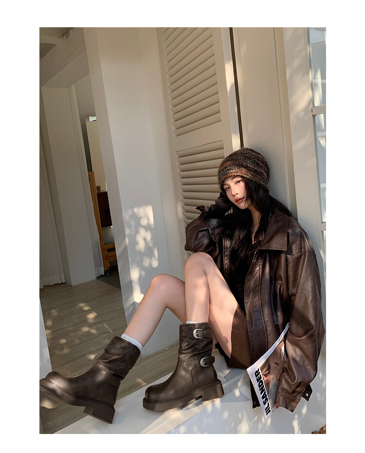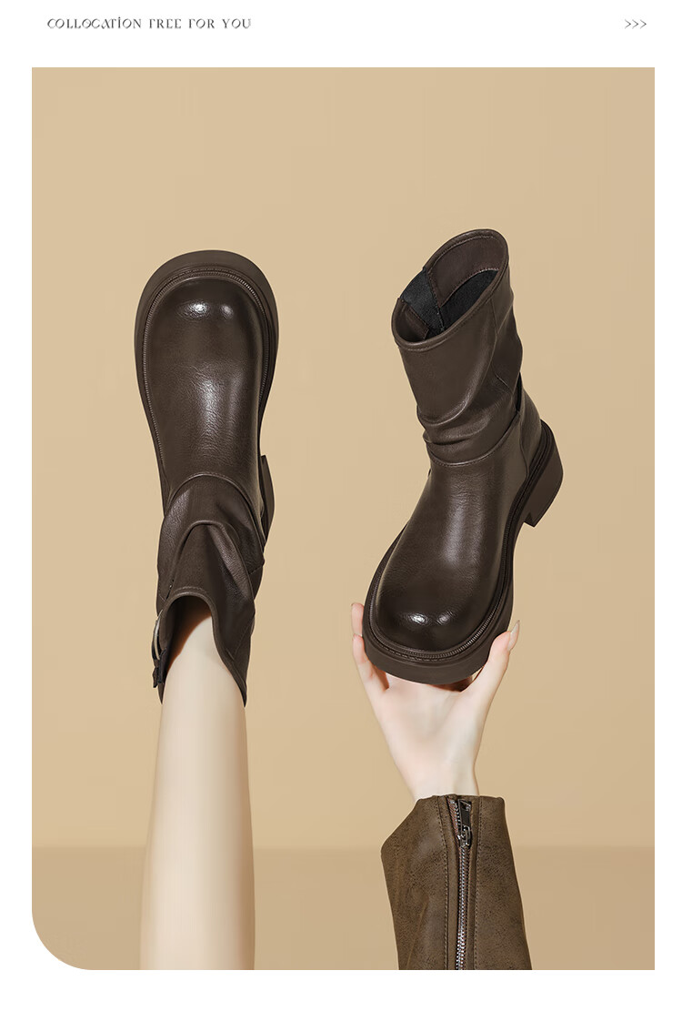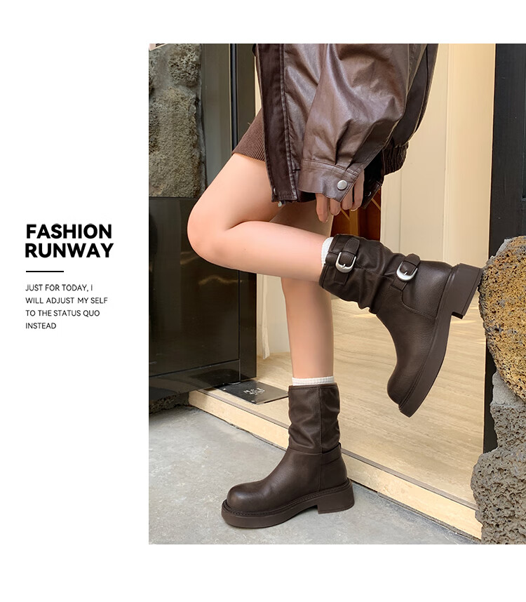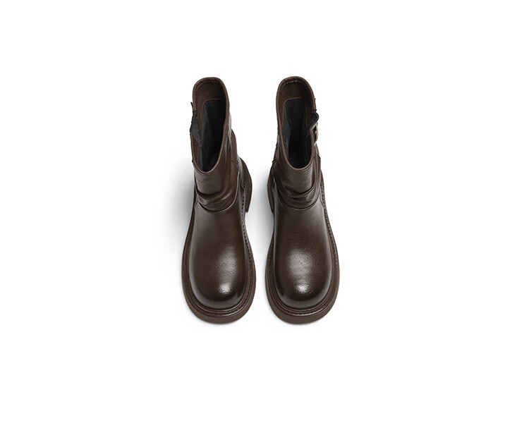 卓诗尼复古百搭粗跟西部靴短筒靴子女2025新款冬潮流皮带扣袜靴 棕色 39