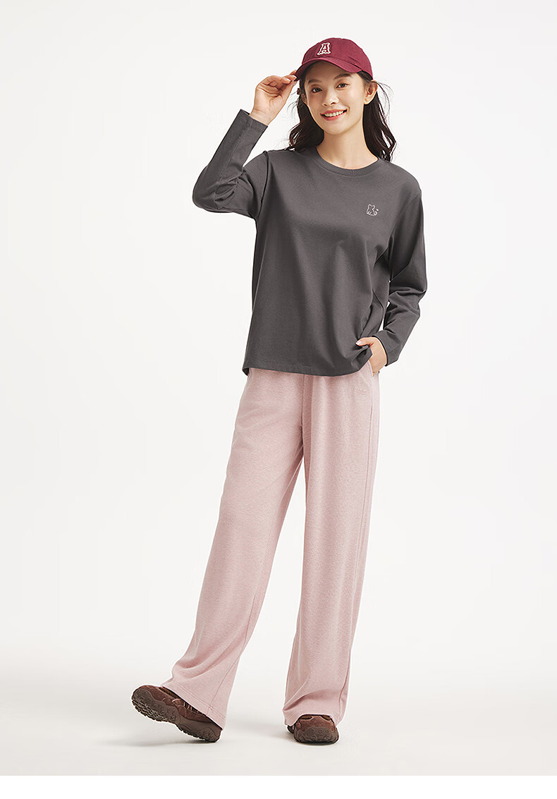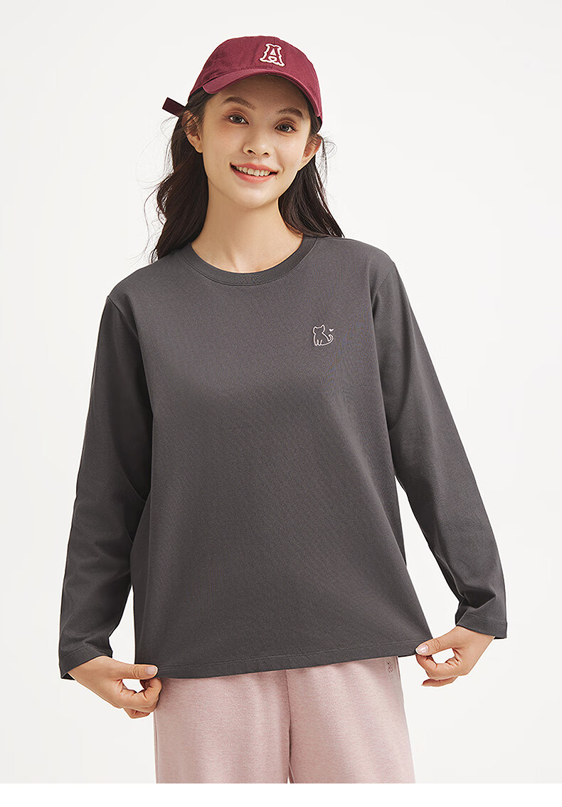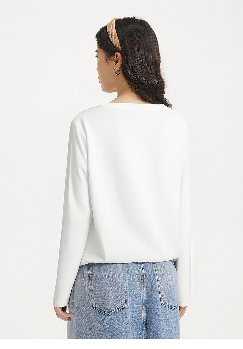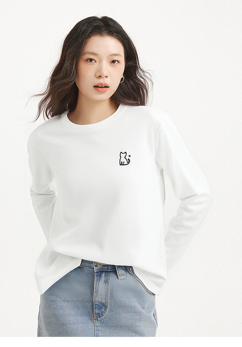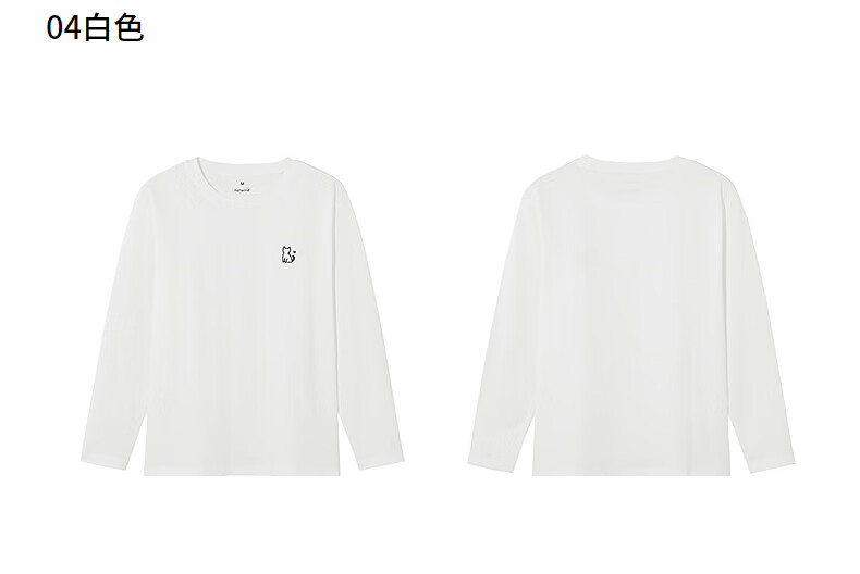 热风2025年秋季新款女士刺绣圆领长袖T恤 04白色 S