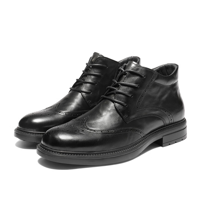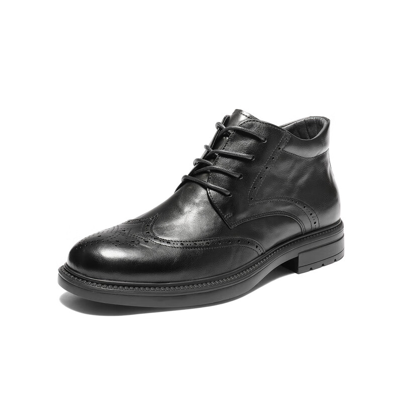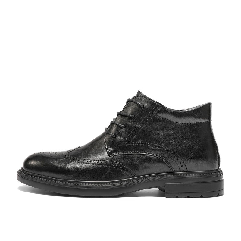 森达皮靴男2025冬季新款抓纹真皮厚底休闲短靴VD005DD5 黑色 38