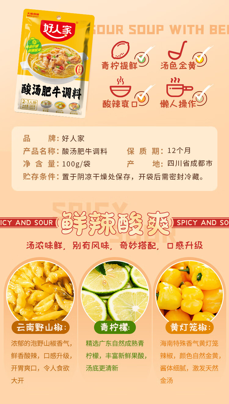 好人家酸汤肥牛调料 青柠提鲜懒人操作多菜谱调味品100g2-3人份