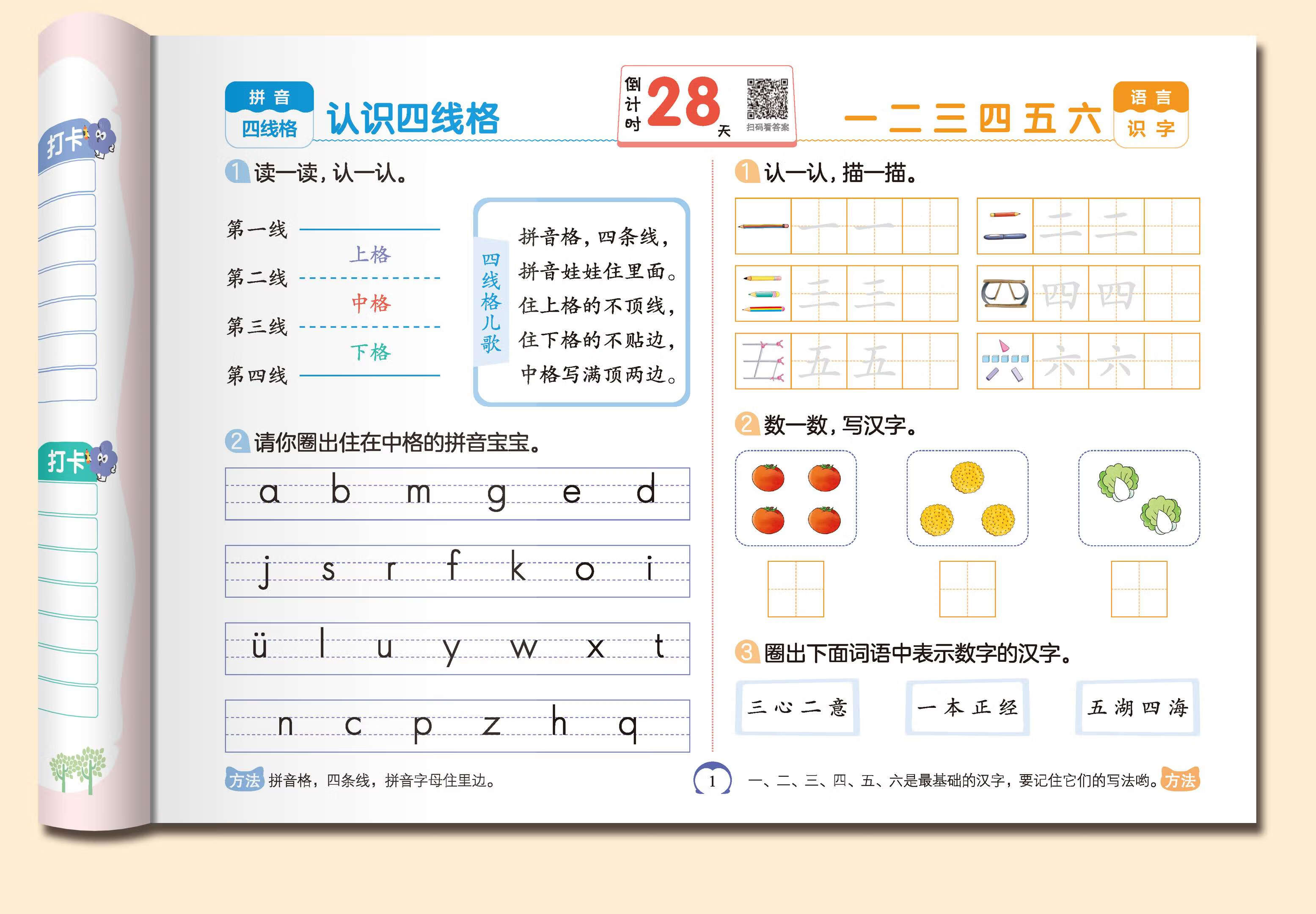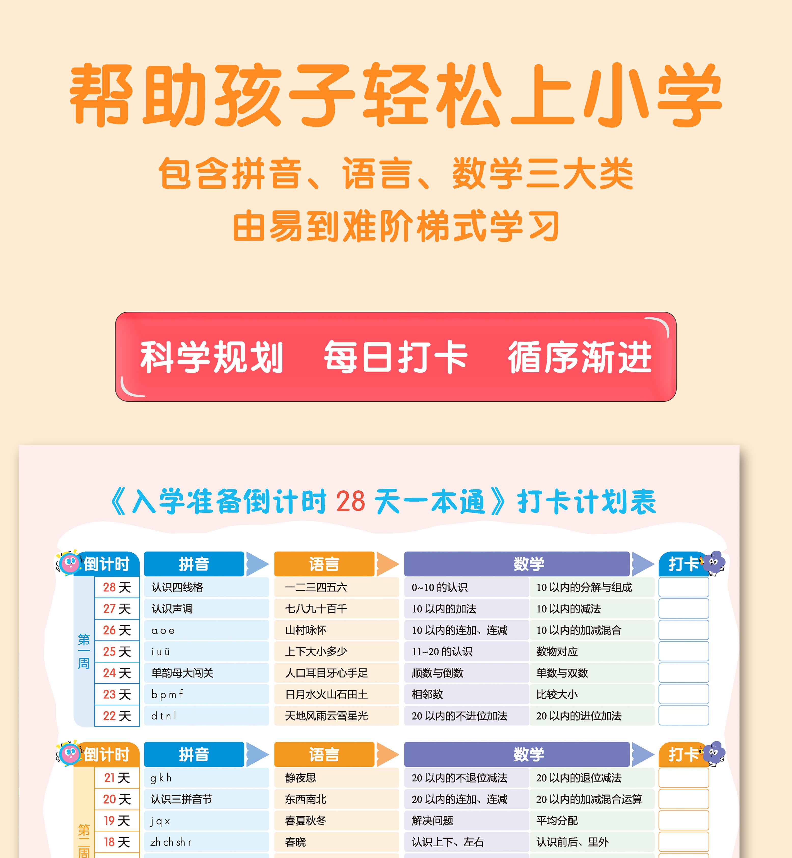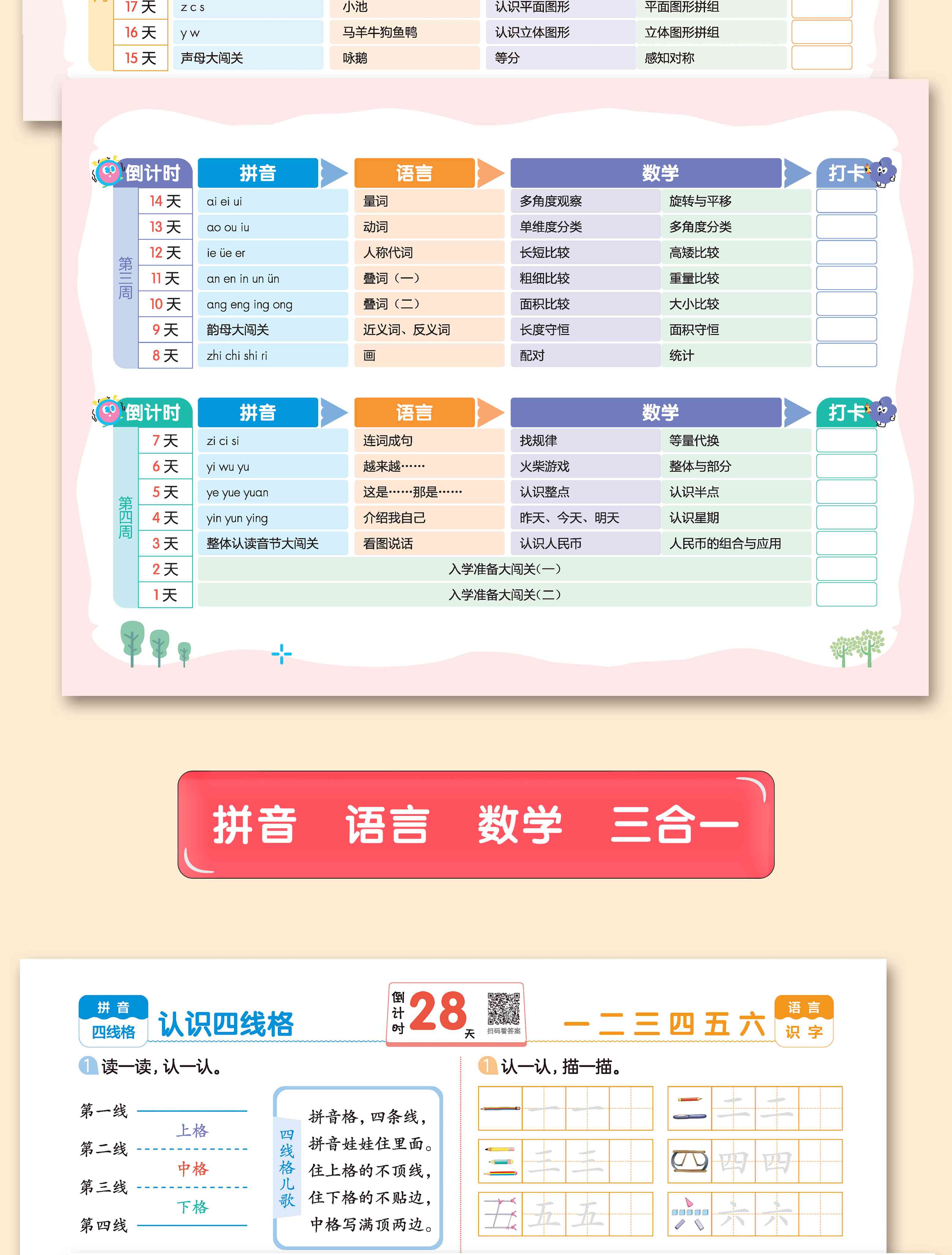 入学准备28天幼儿园为一年级做准备 拼音语言数学一本通 28天一本通(入学准备)