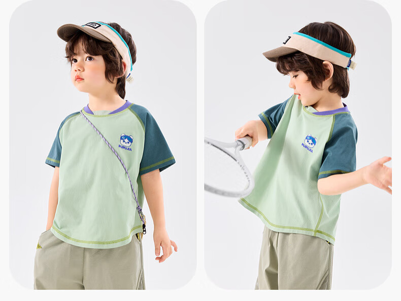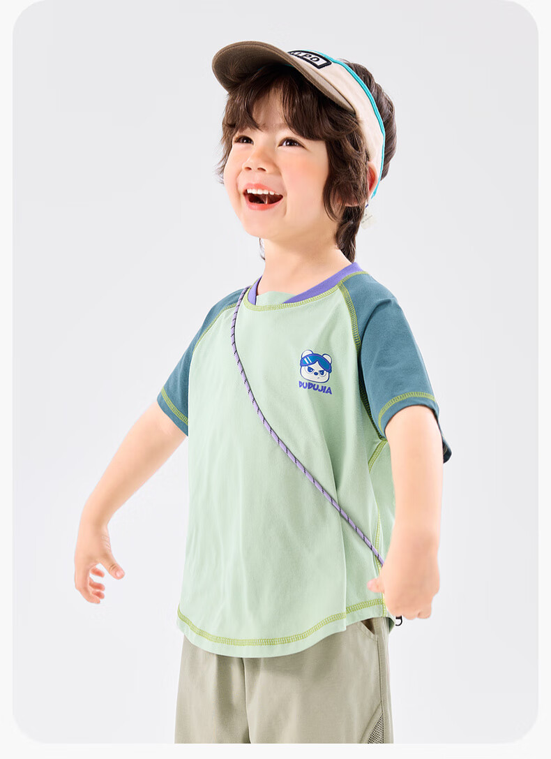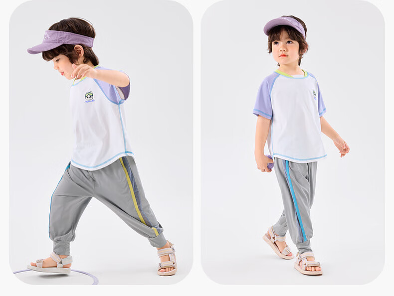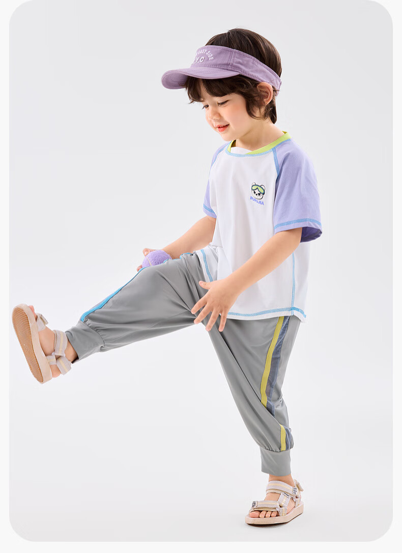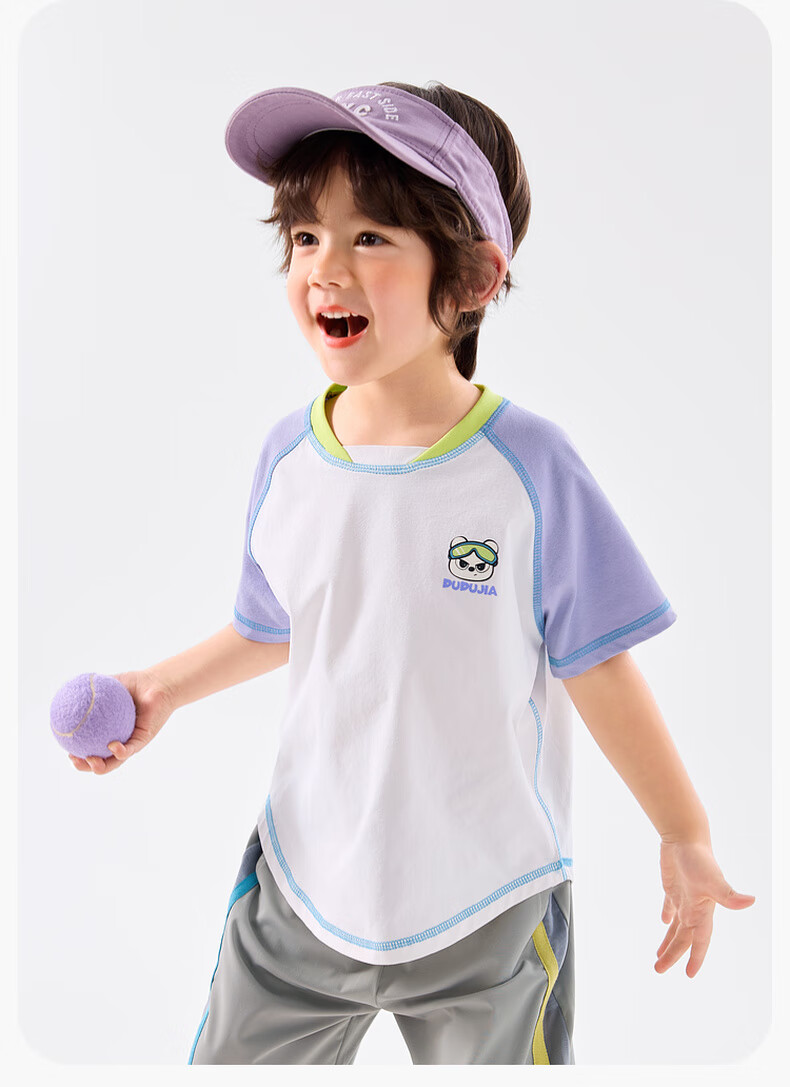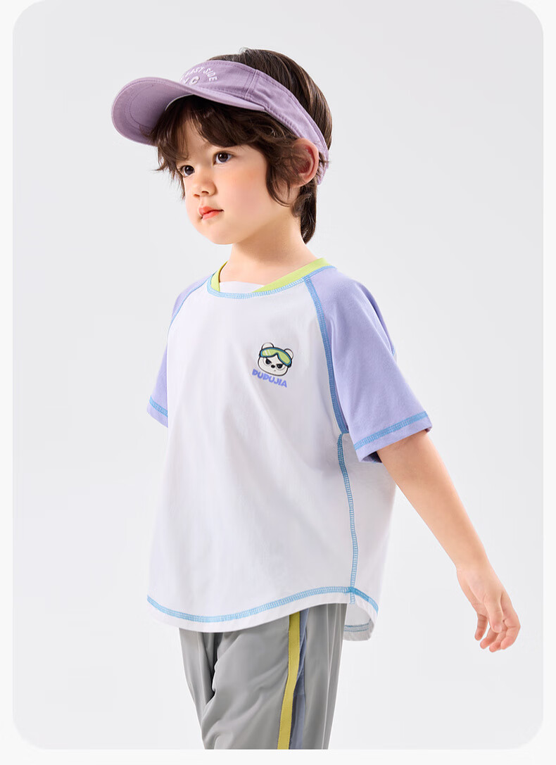 嘟嘟家[UPF50+]宝宝夏季短袖T恤儿童拼接短t夏装男童上衣女童装 紫色120