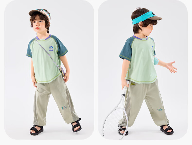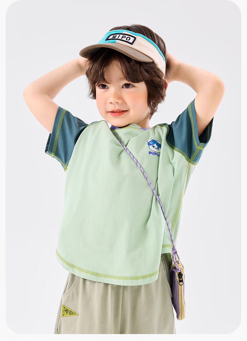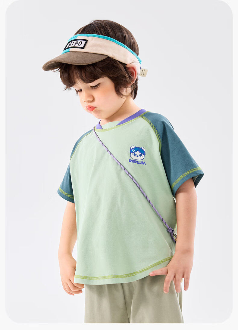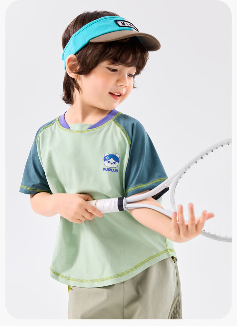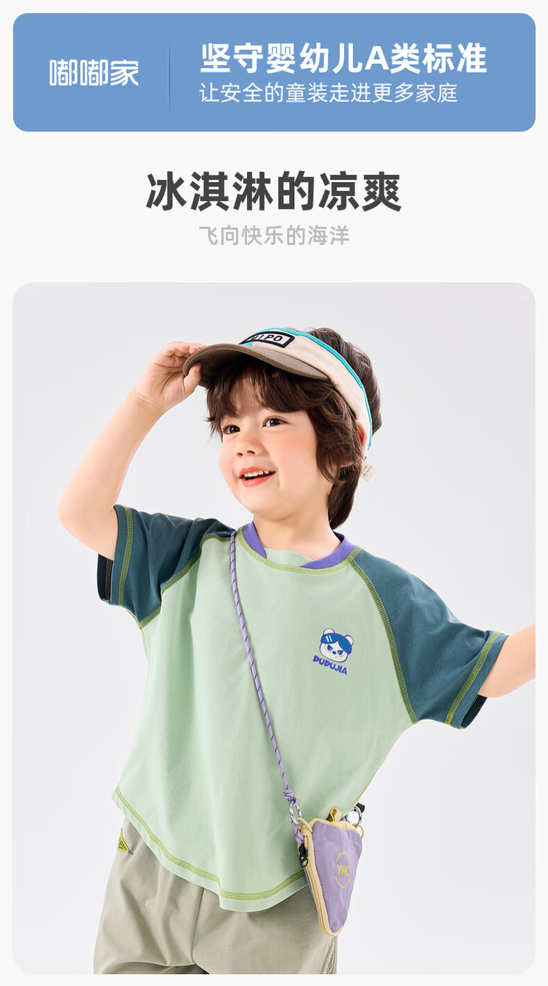 嘟嘟家[UPF50+]宝宝夏季短袖T恤儿童拼接短t夏装男童上衣女童装 紫色120