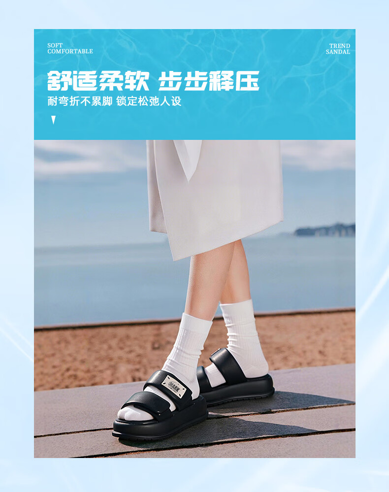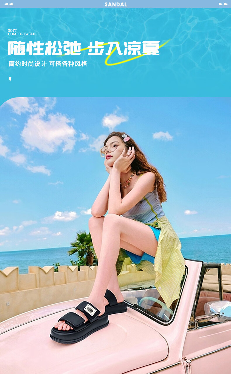 马克华菲一字凉拖鞋外出穿女士沙滩夏天季时尚一脚蹬高颜值 黑色 36