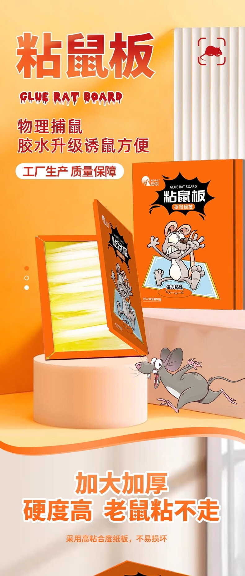 南华千牧老鼠粘强力粘鼠板抓大老鼠贴沾鼠捕鼠诱鼠家用仓库加大加厚10个装