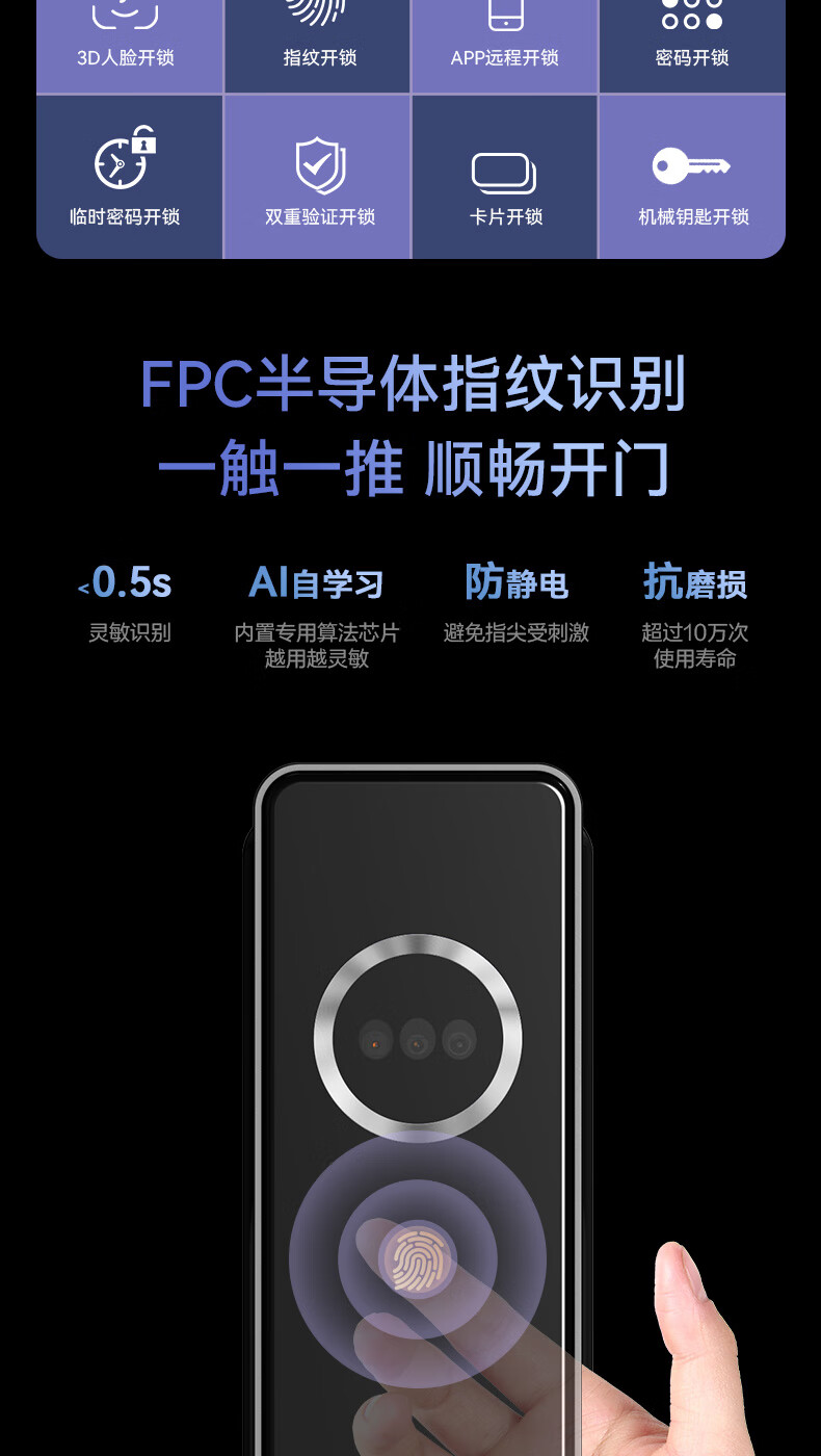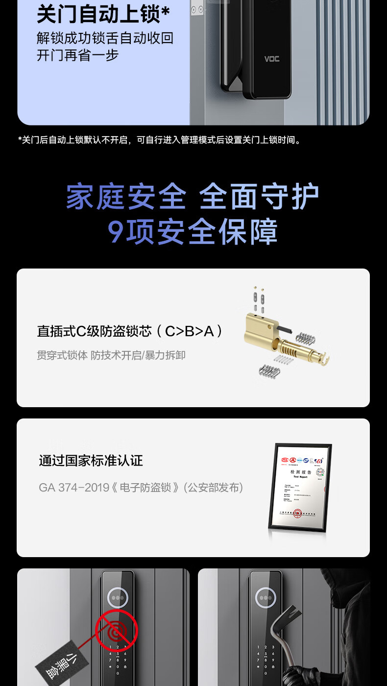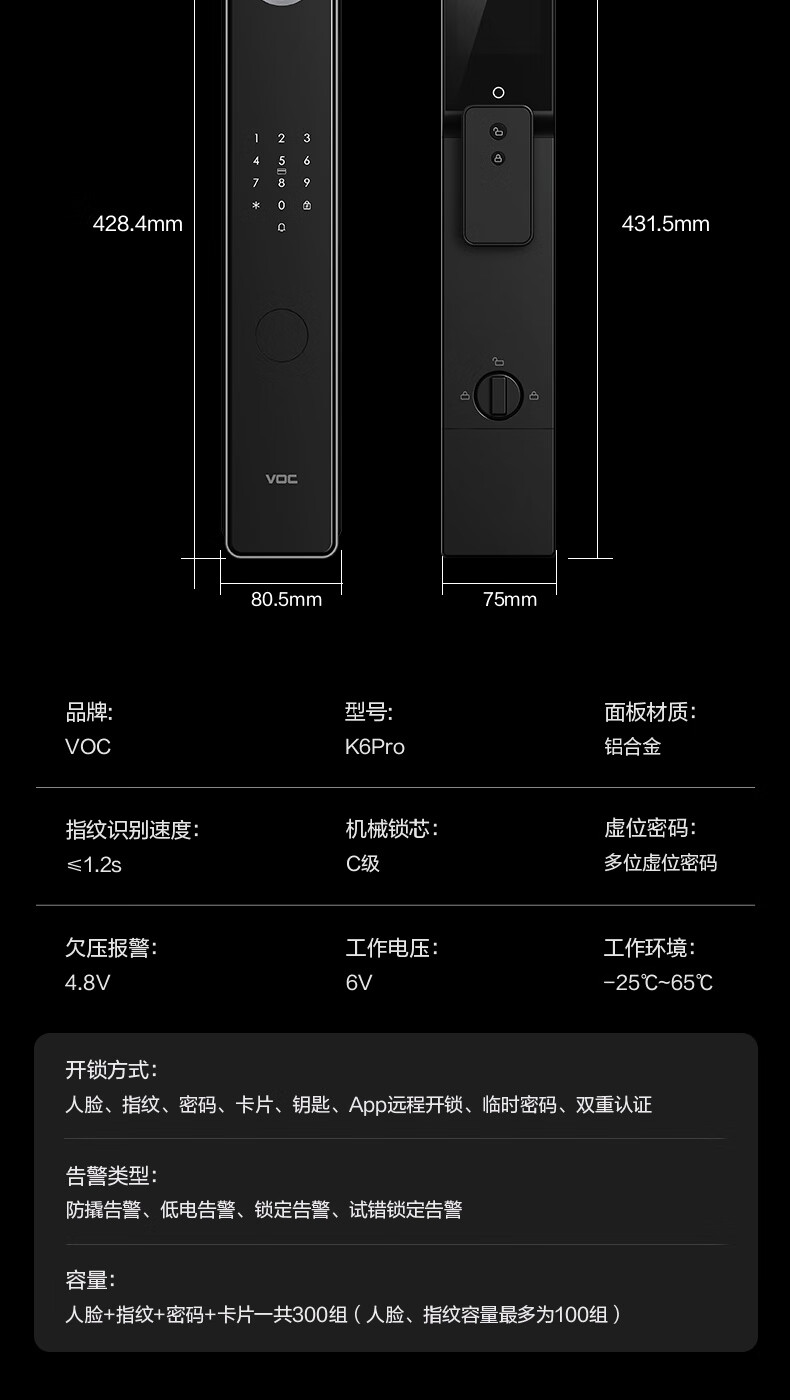 VOC智能门锁密码锁人脸识别指纹锁入户门防盗门电子锁K6Pro