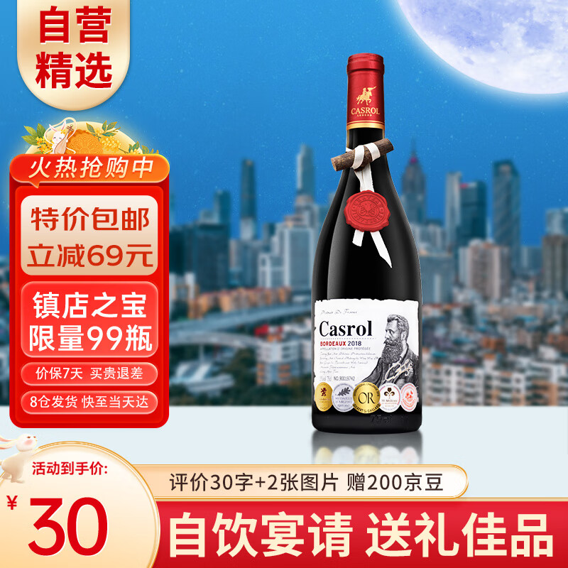 卡露传奇法国进口红酒波尔多AOC赤霞珠梅洛干红葡萄酒750ml单支装中秋礼品