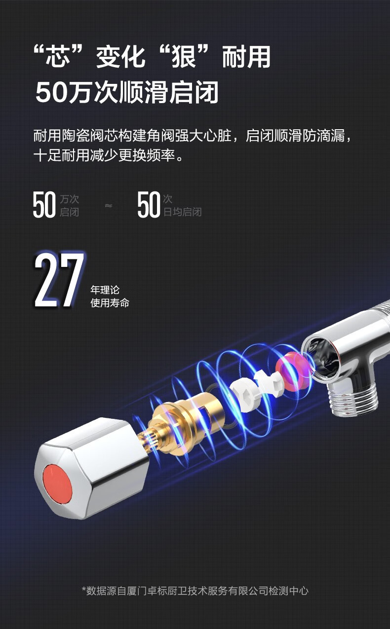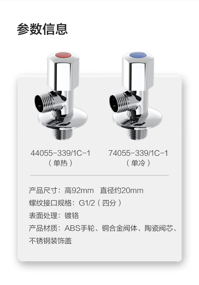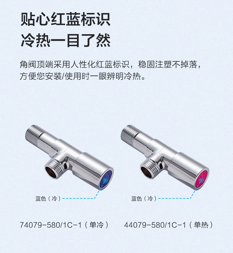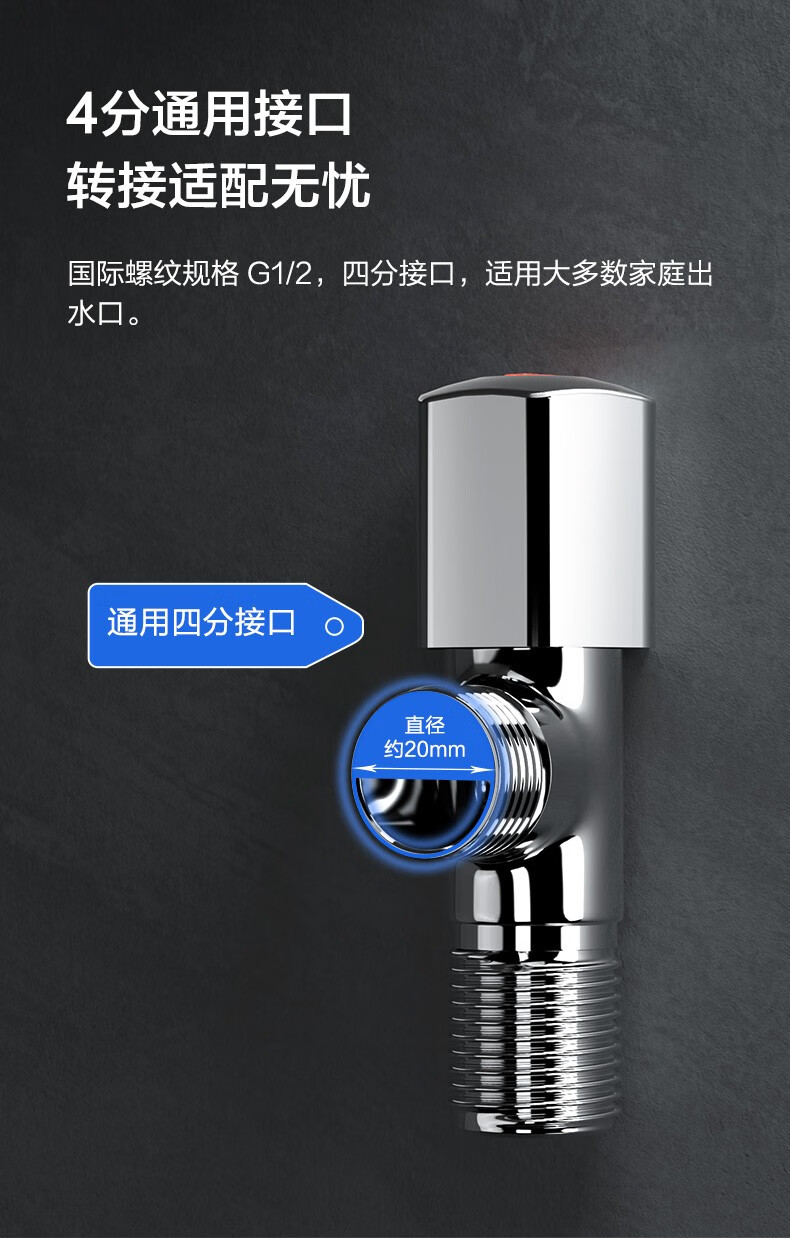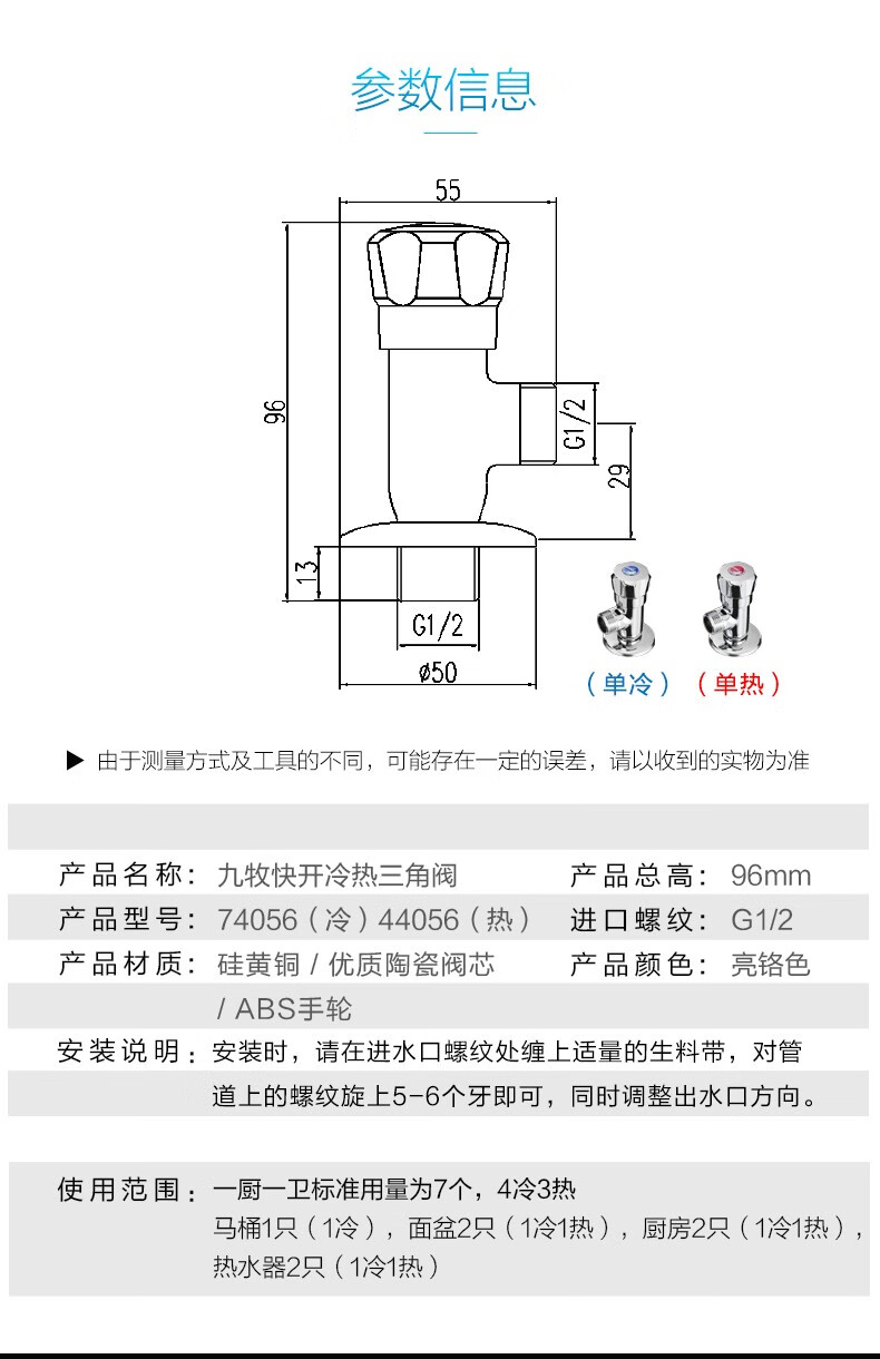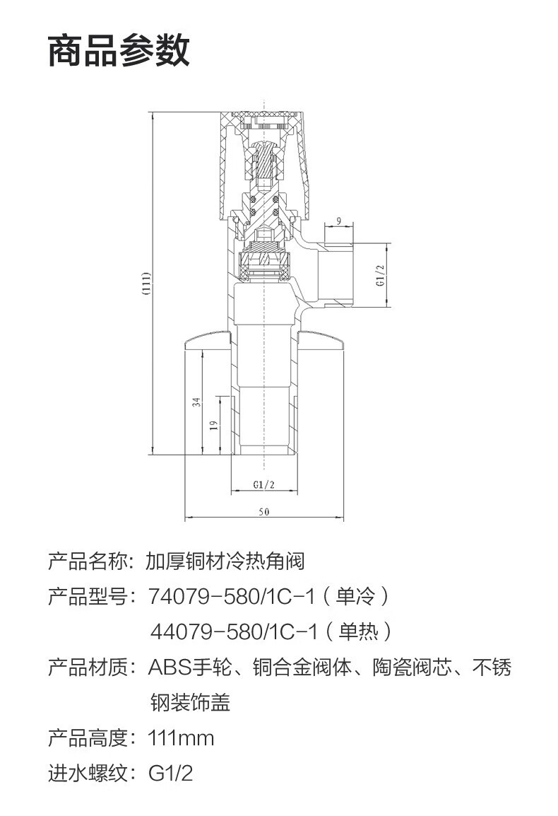 九牧(JOMOO) 厨房卫浴五金精铜加厚陶瓷阀芯八字阀二通角阀冷热两用角阀 HG 【ABS手轮单热角阀44055】