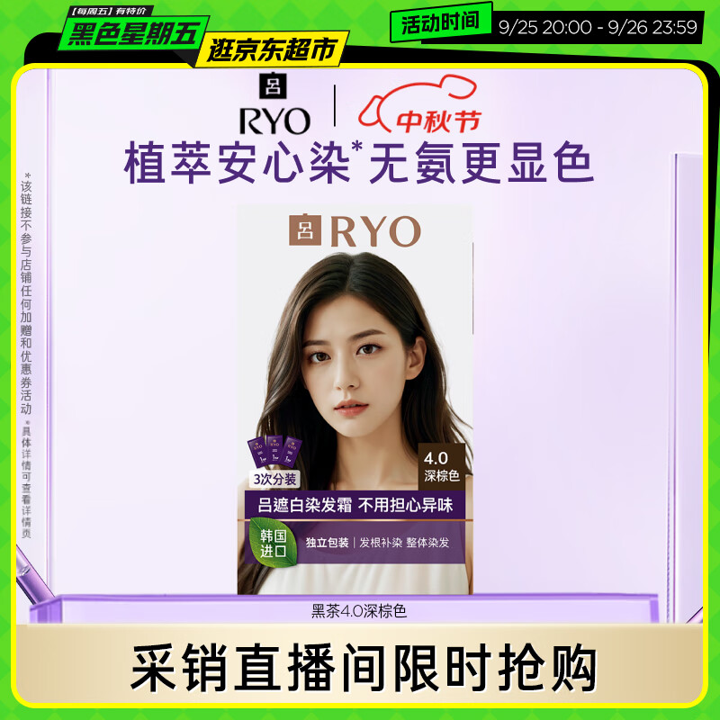 吕(Ryo)爱茉莉染发剂植物无氨安心染男女士盖白头发染发膏黑茶4.0深棕色