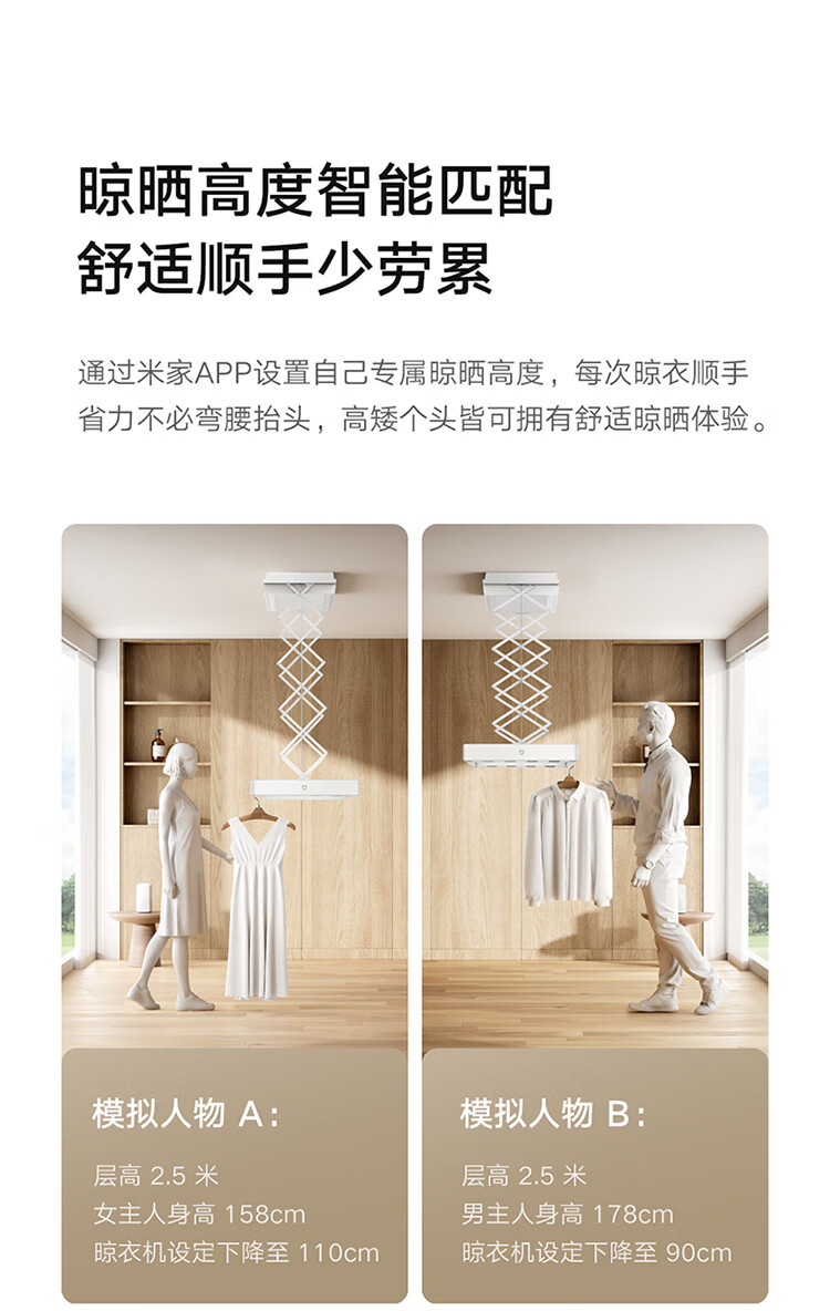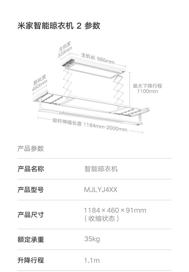 米家智能晾衣机 2隐形超薄嵌入隐藏式遥控升降晾衣杆小米电动晾衣架 米家智能晾衣机 2