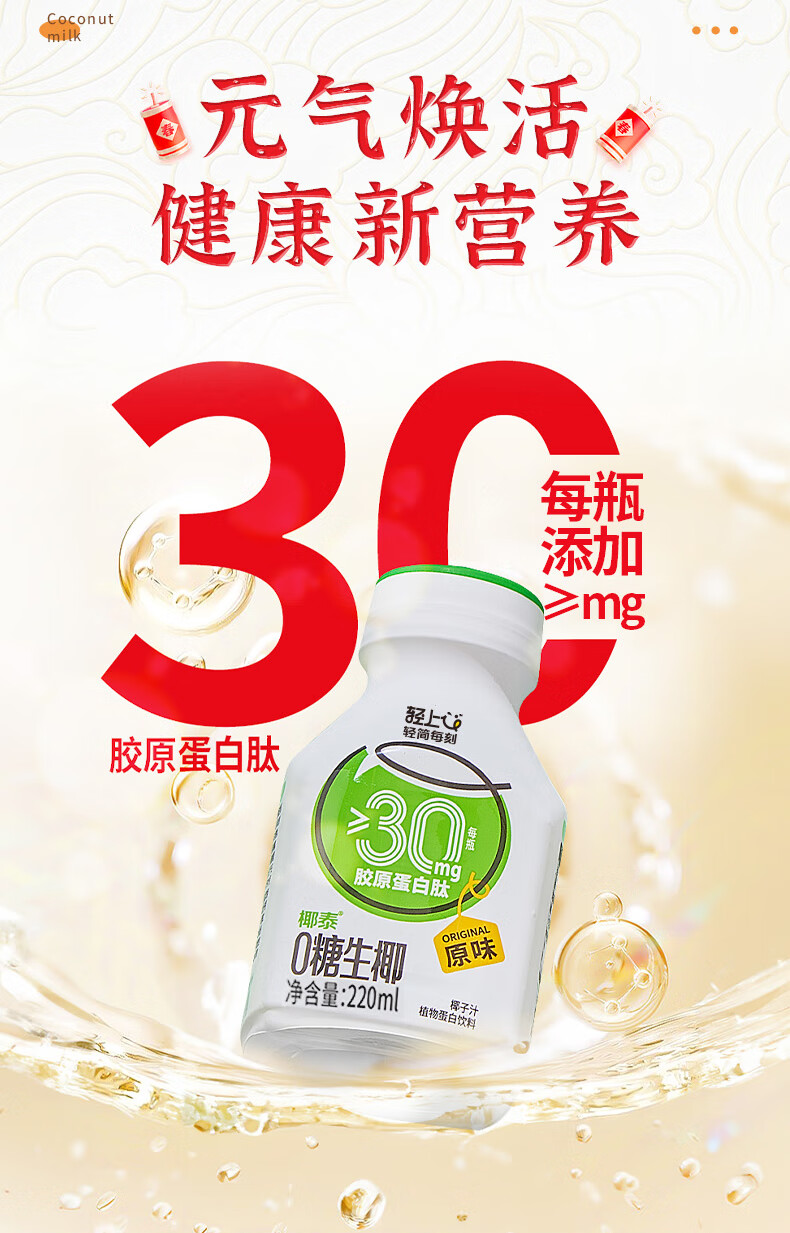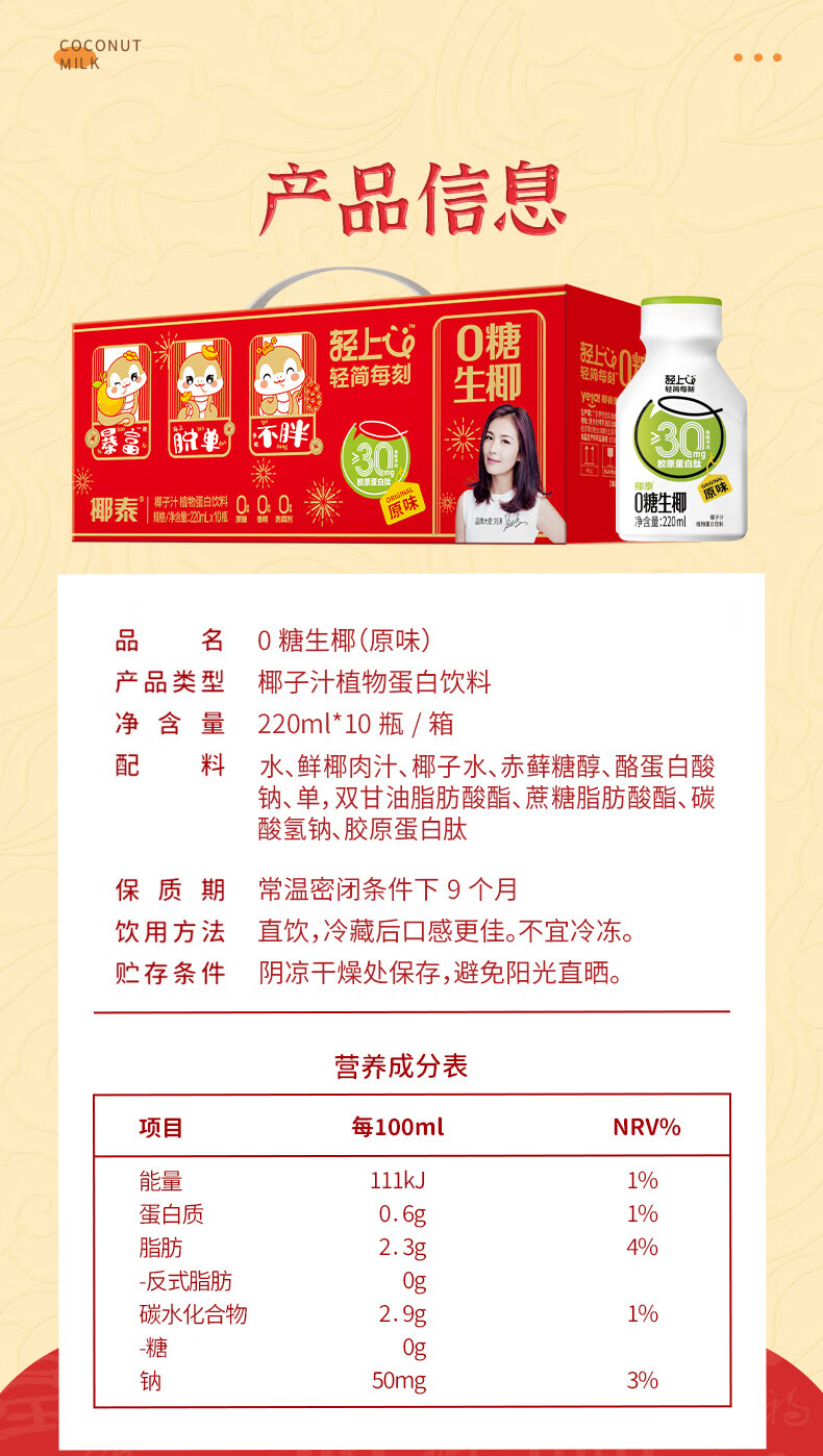 椰泰轻上生椰 胶原蛋白肽 益生元西梅饮60ml*10瓶