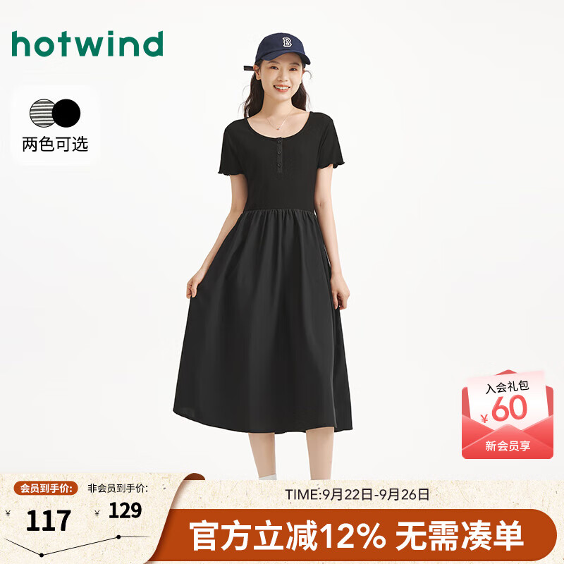 热风女士短袖拼接连衣裙2025年秋季新款女士针梭条纹显瘦A字连衣裙 01黑色 M