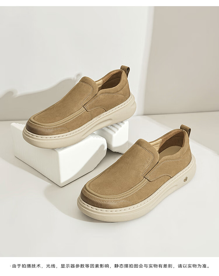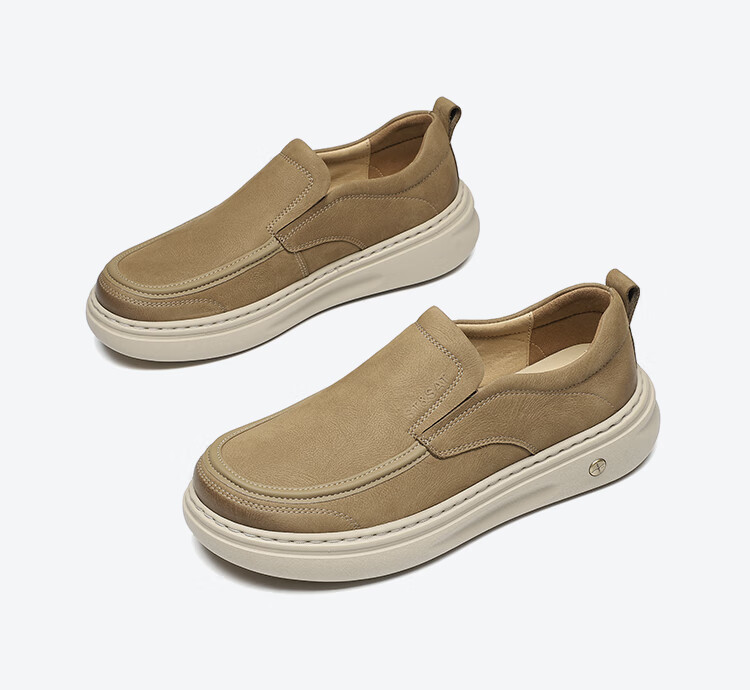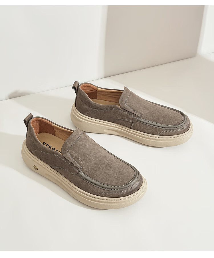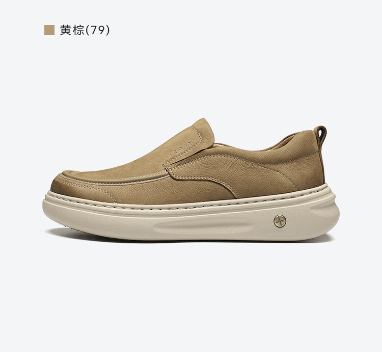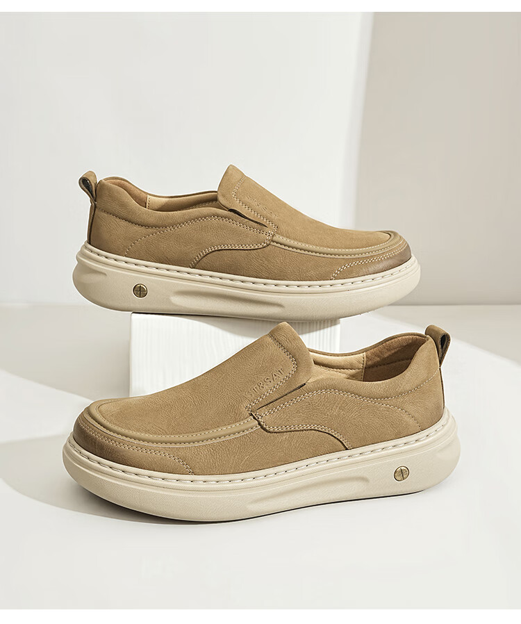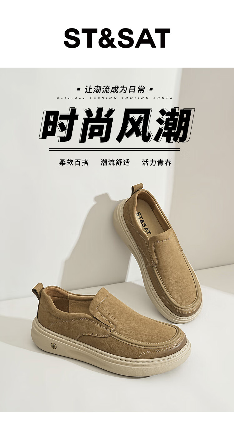 星期六男鞋头层牛皮时尚布鞋舒适百搭工装鞋复古风休闲鞋套脚帆布鞋子男
