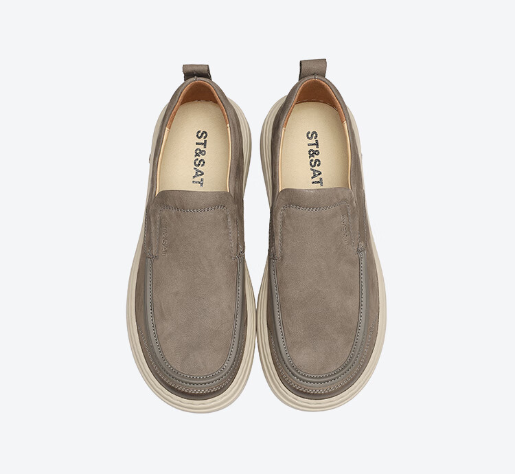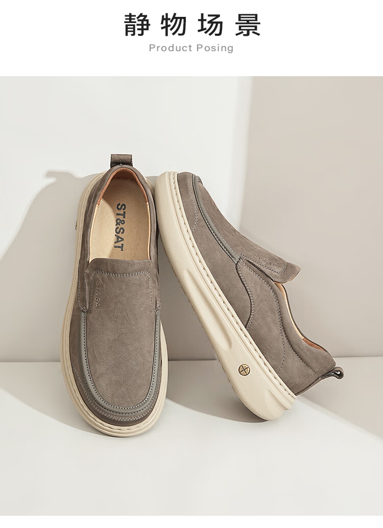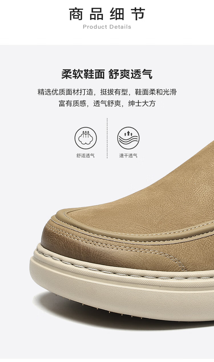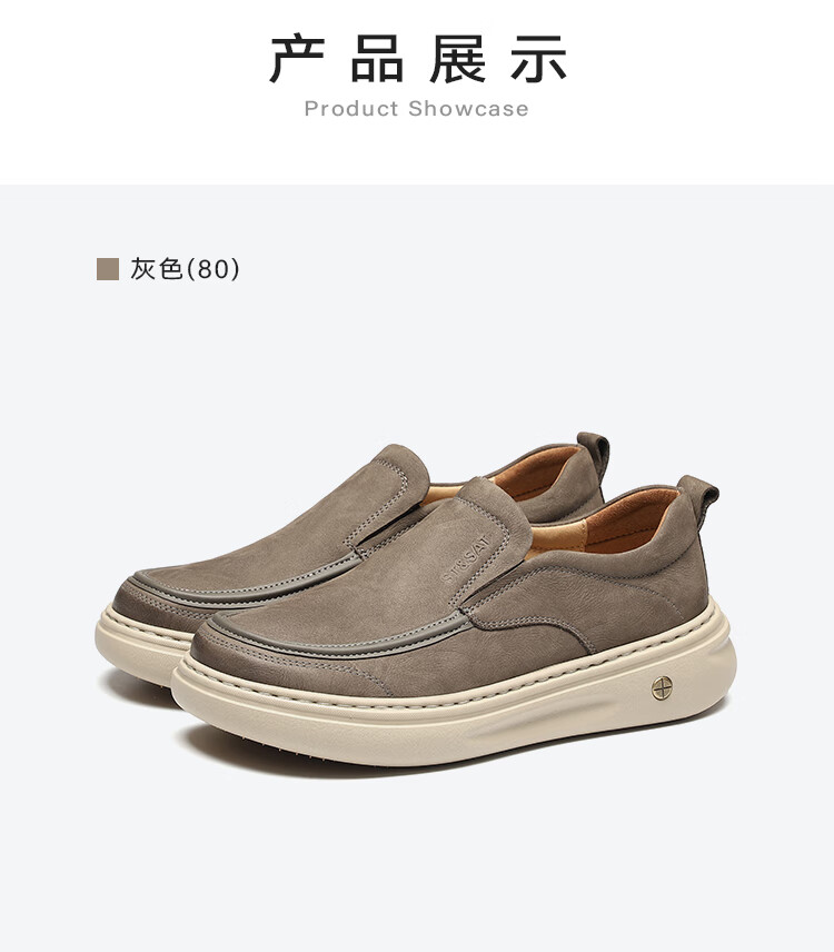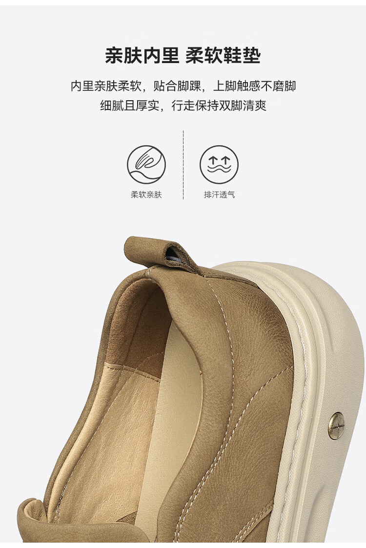 星期六男鞋头层牛皮时尚布鞋舒适百搭工装鞋复古风休闲鞋套脚帆布鞋子男