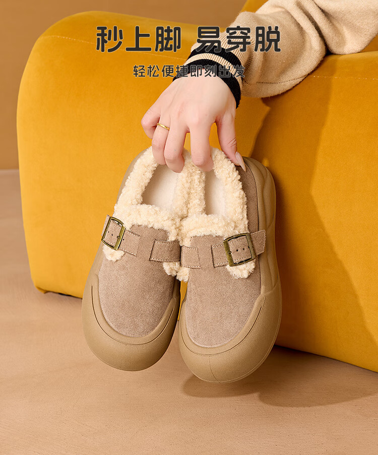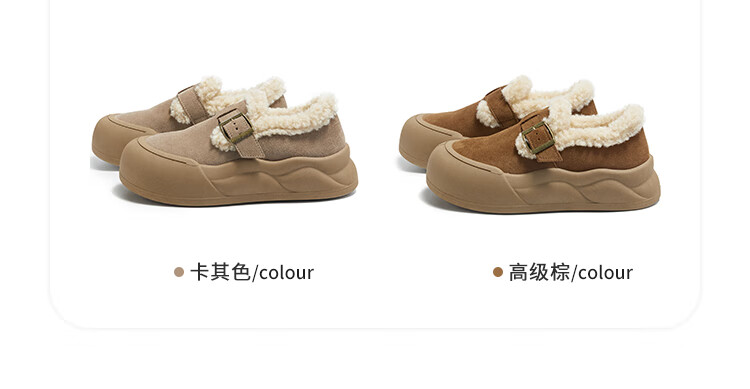 拉夏贝尔女鞋秋冬新款保暖加绒休闲女鞋防滑设计博肯板鞋防寒百搭女鞋 高级棕 MS-XZX009 35
