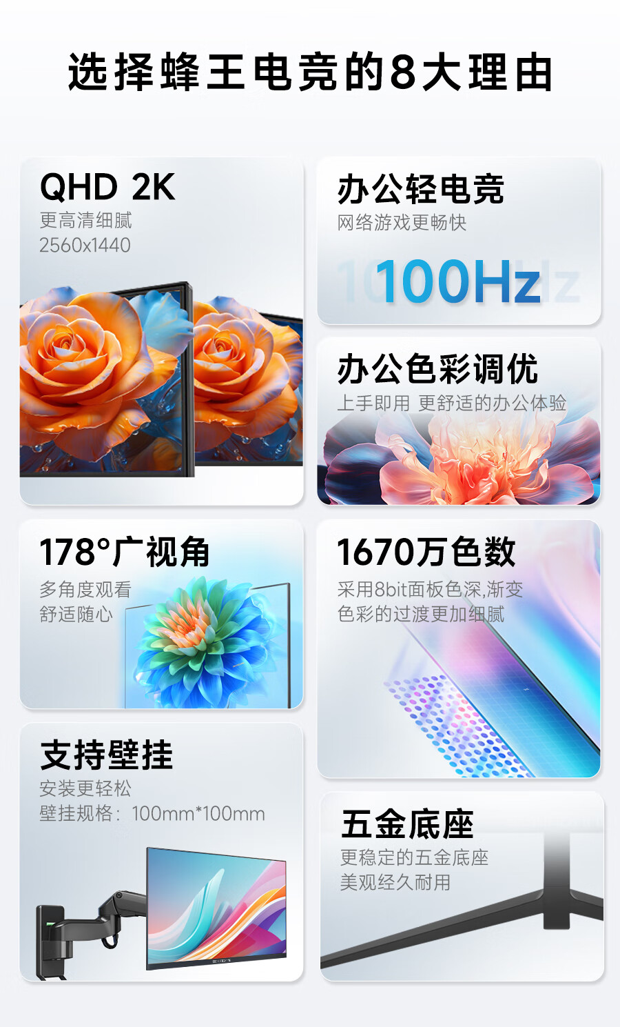 蜂王电竞27英寸2K高清100Hz显示器办公电脑显示屏IPS网络游戏屏幕电竞超清分辨率HDMI笔记本电脑副屏扩展屏