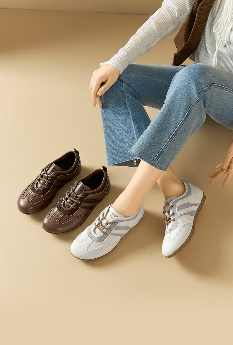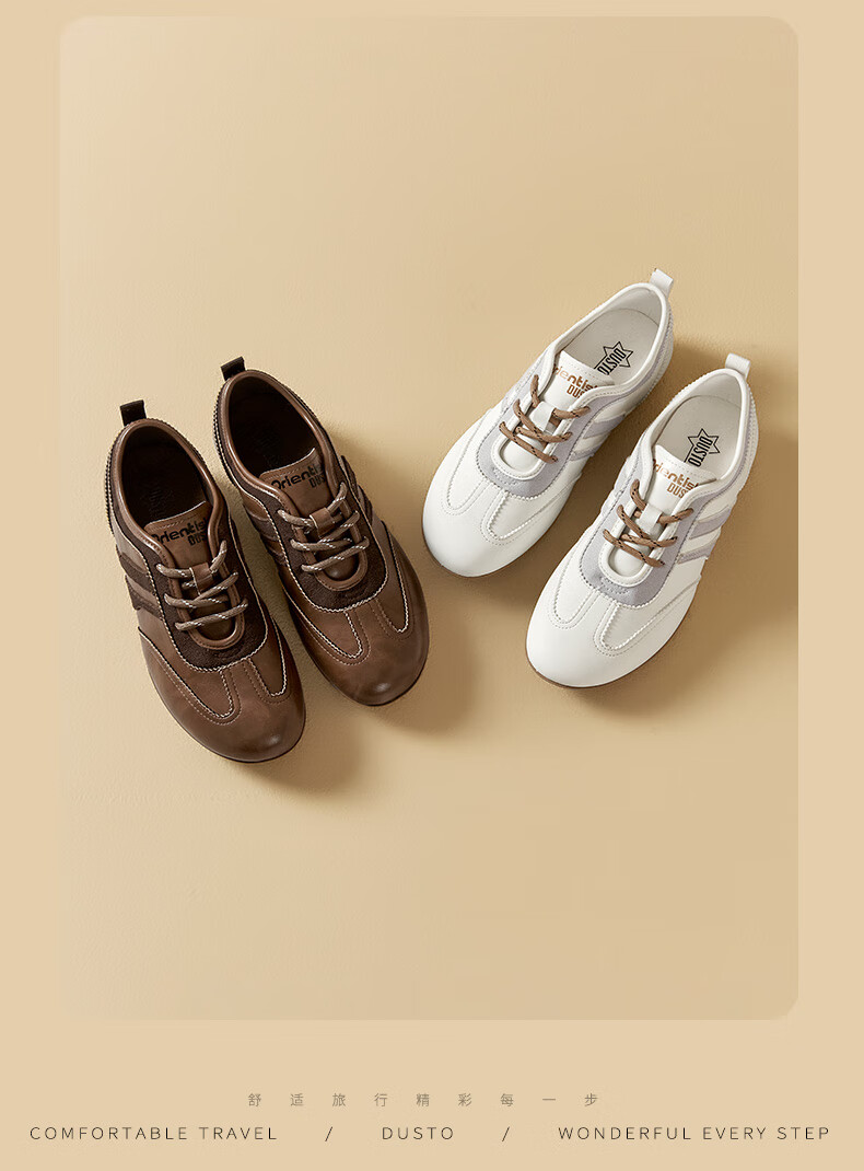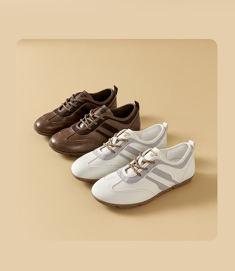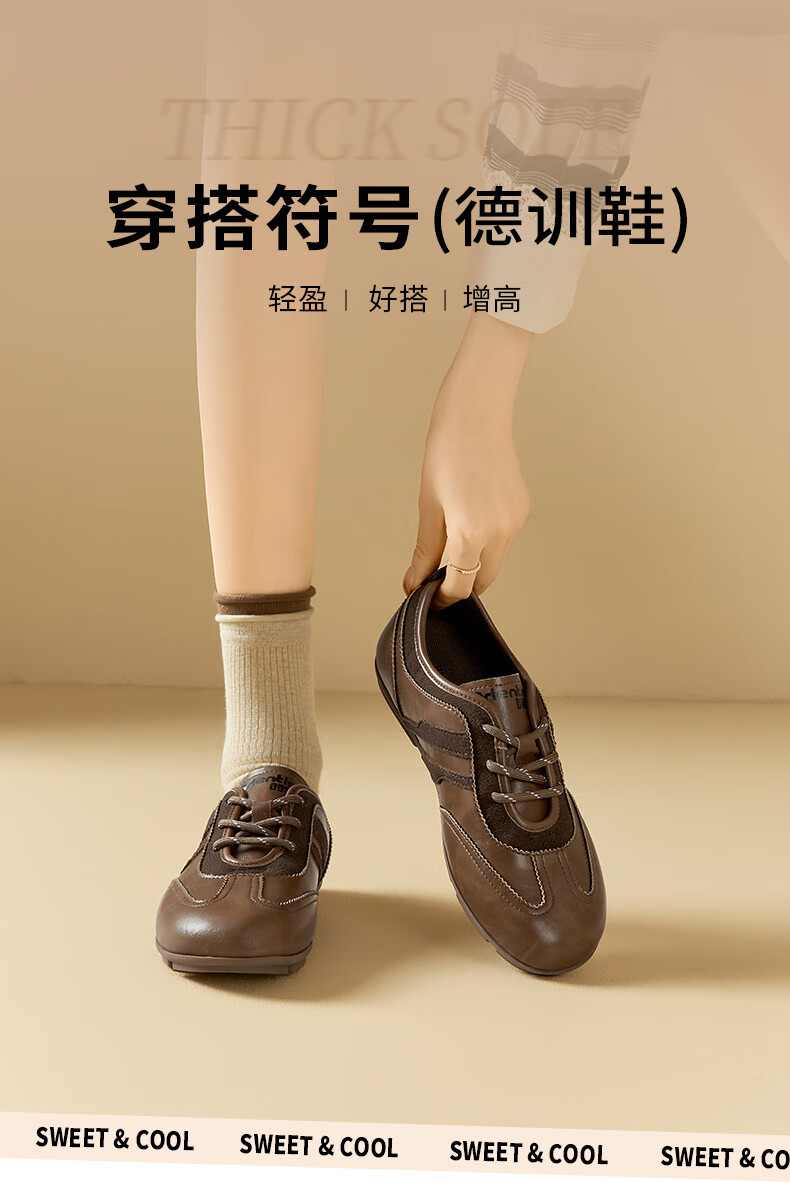 大东德训鞋女鞋2025年秋季新款舒适圆头系带休闲鞋0675 棕色 35