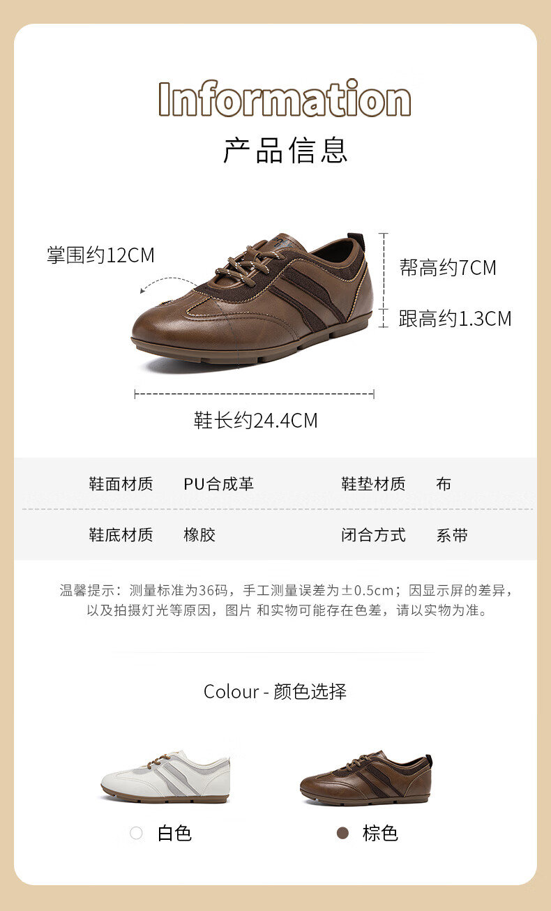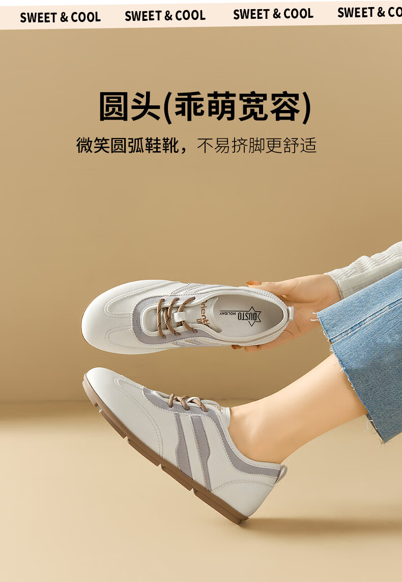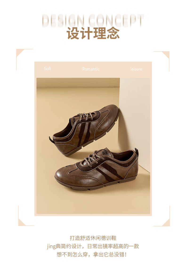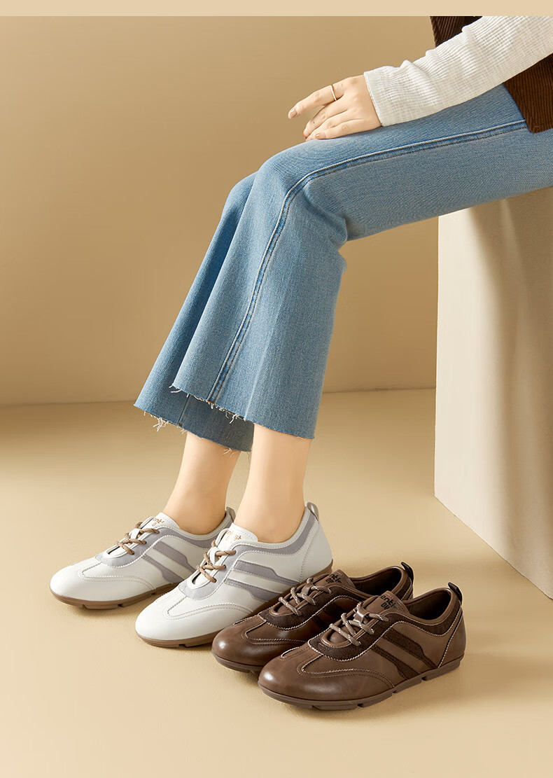 大东德训鞋女鞋2025年秋季新款舒适圆头系带休闲鞋0675 棕色 35