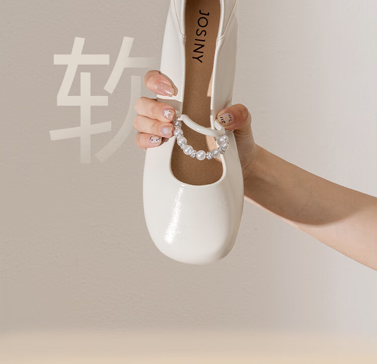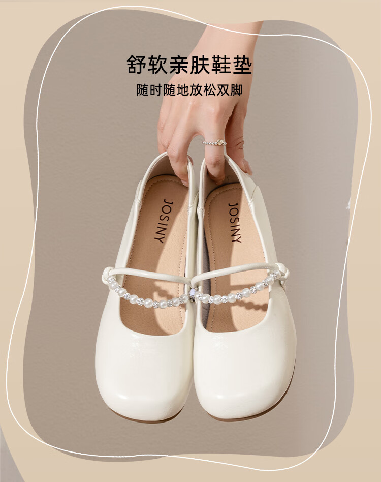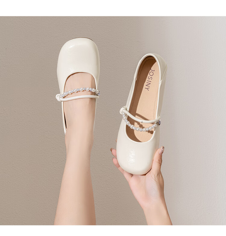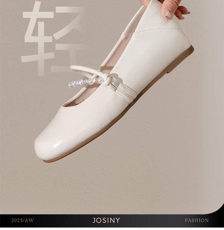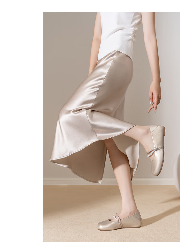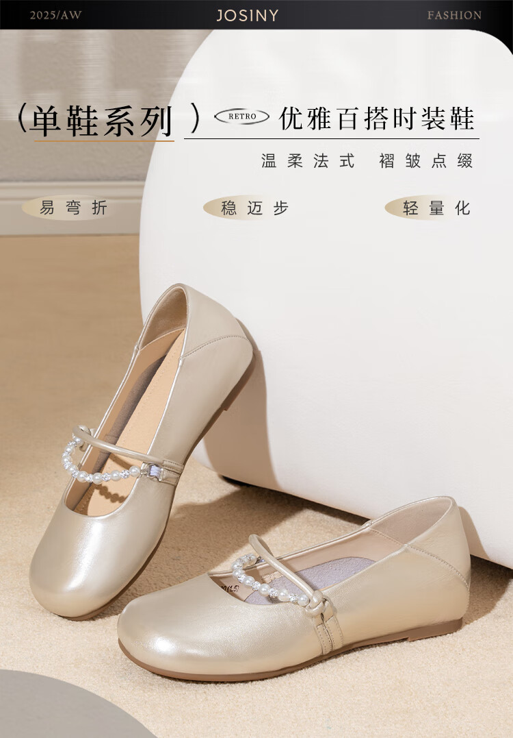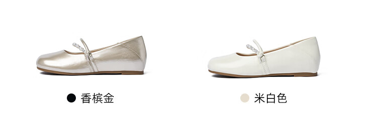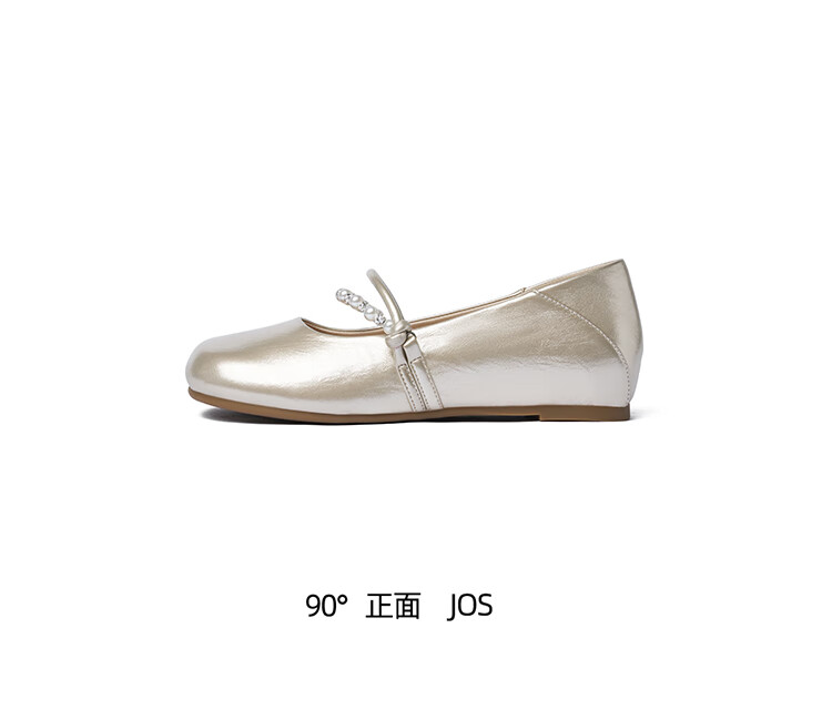 卓诗尼绝美珍珠单鞋女2025秋季新款一字带配裙子浅口玛丽珍鞋 香槟金 37