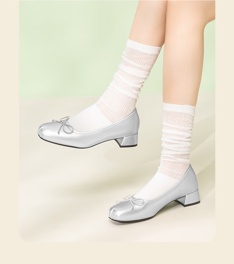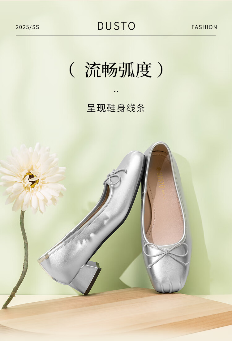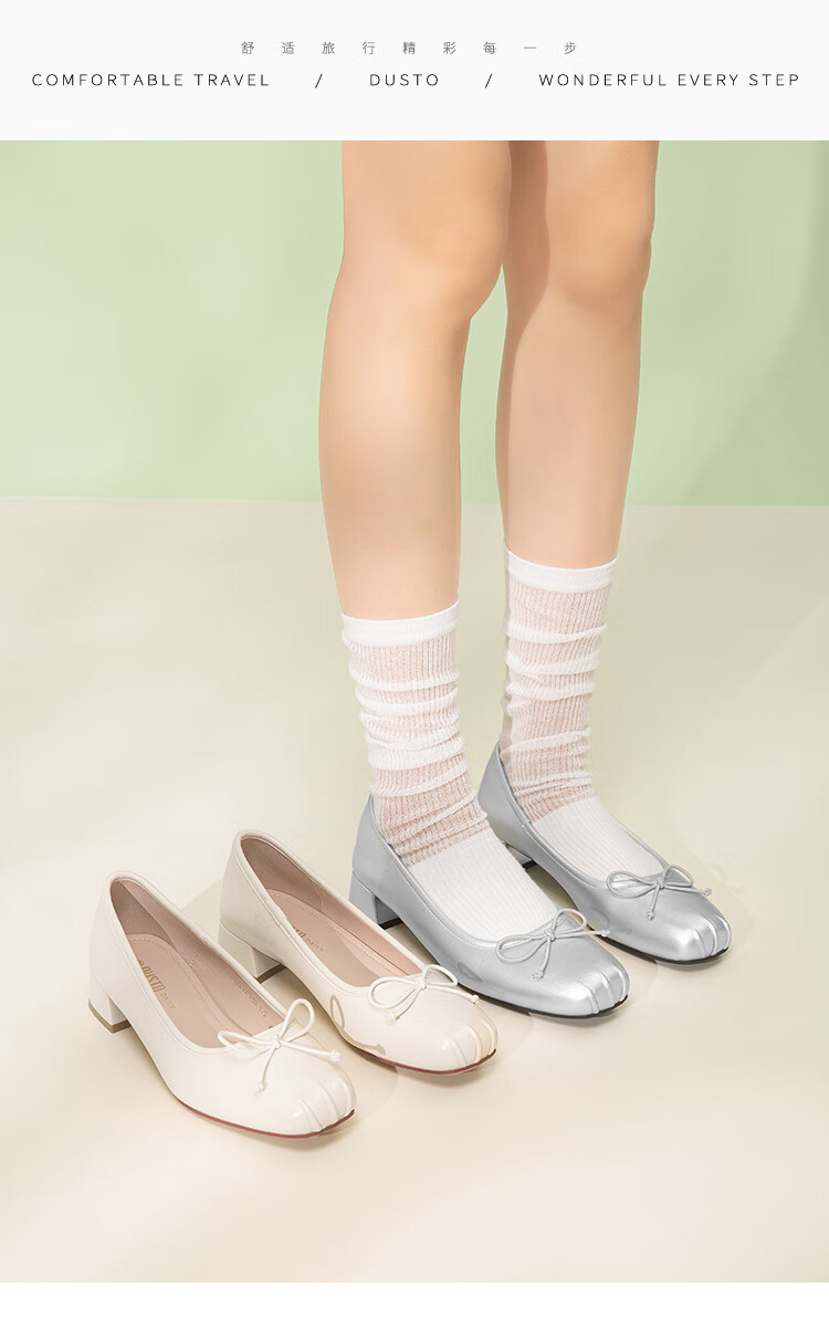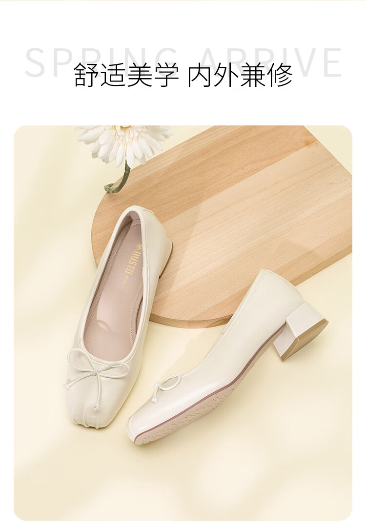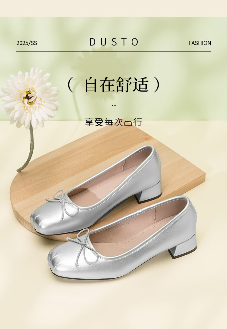 大东(dusto)粗跟方头浅口单鞋2025夏季甜美蝴蝶结芭蕾风百搭轻便女鞋0077 米色 35