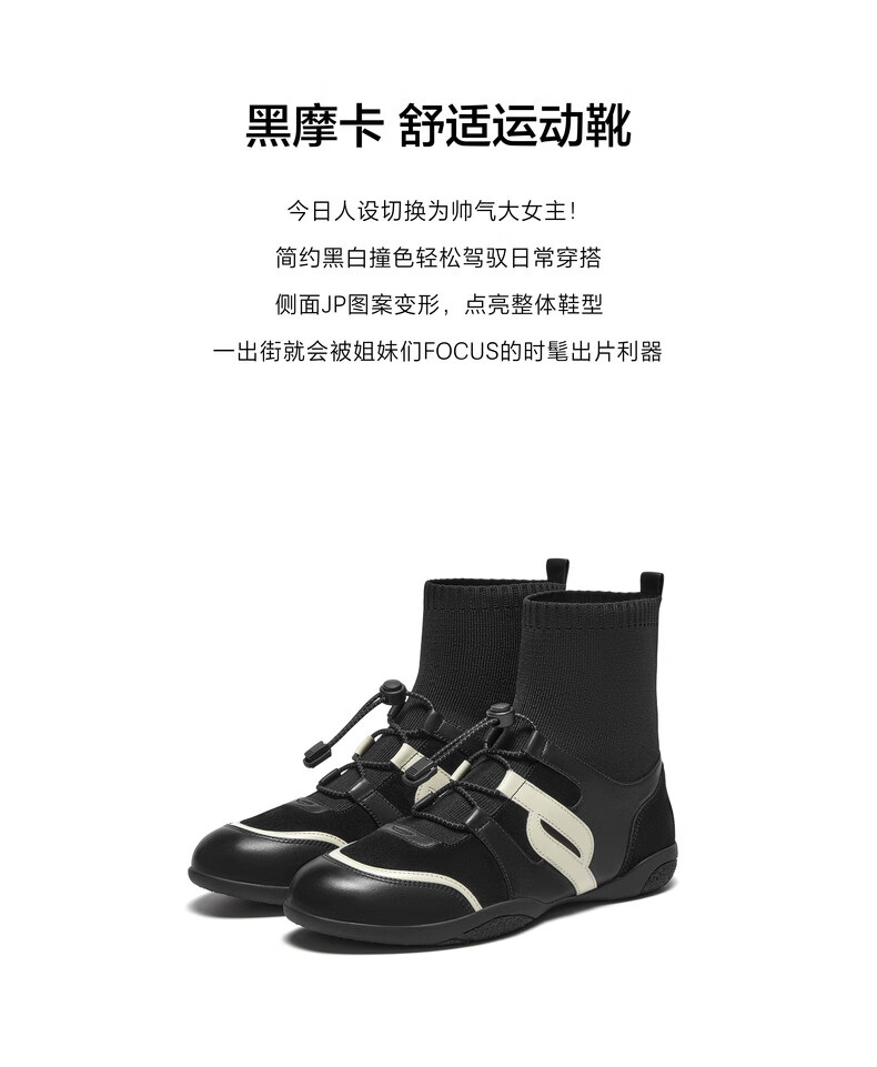 真美诗(Joy&peace)2025年冬新款简约黑白撞色舒适运动休闲短靴袜靴女YEC26DZ5 黑色 38