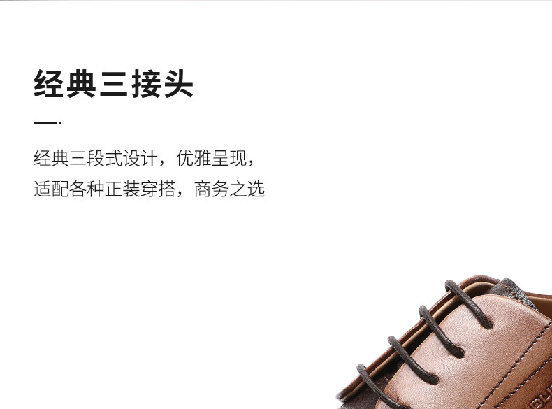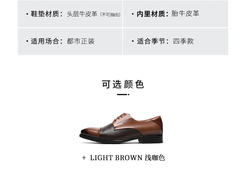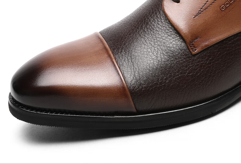 金利来(goldlion)男鞋商务正装皮鞋轻奢英伦风三接头牛津鞋德比鞋拼接男士皮鞋婚鞋 浅咖 41