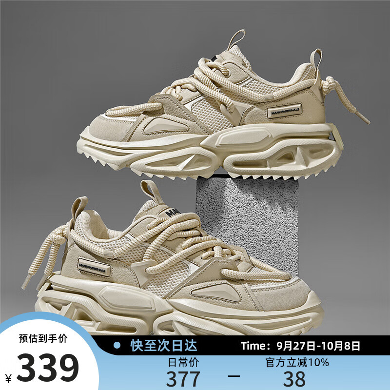 马克华菲老爹鞋男款休闲男鞋夏季新款透气运动鞋厚底增高男士鞋子 杏色 39