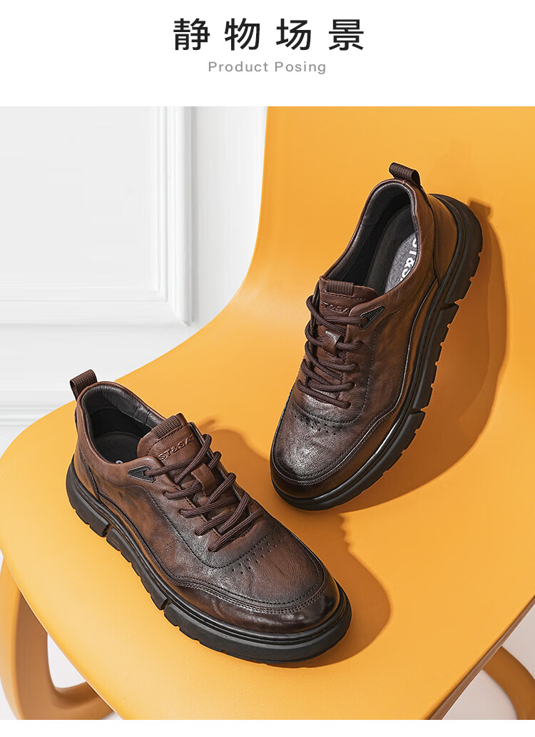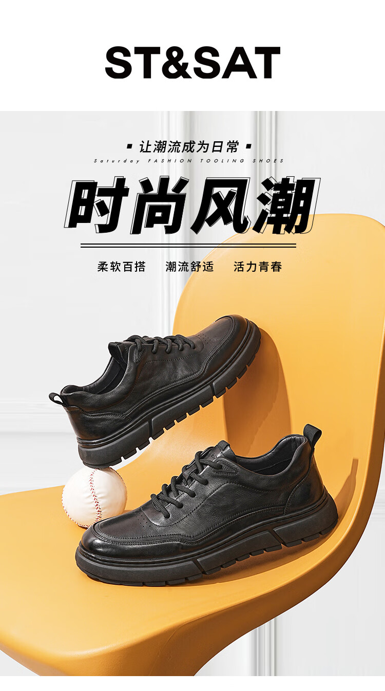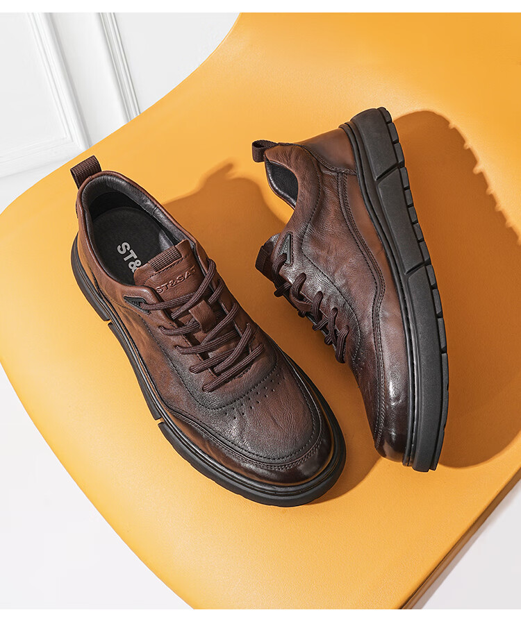 星期六男鞋牛皮商务皮鞋男时尚通勤鞋休闲皮鞋男套脚轻便工装鞋