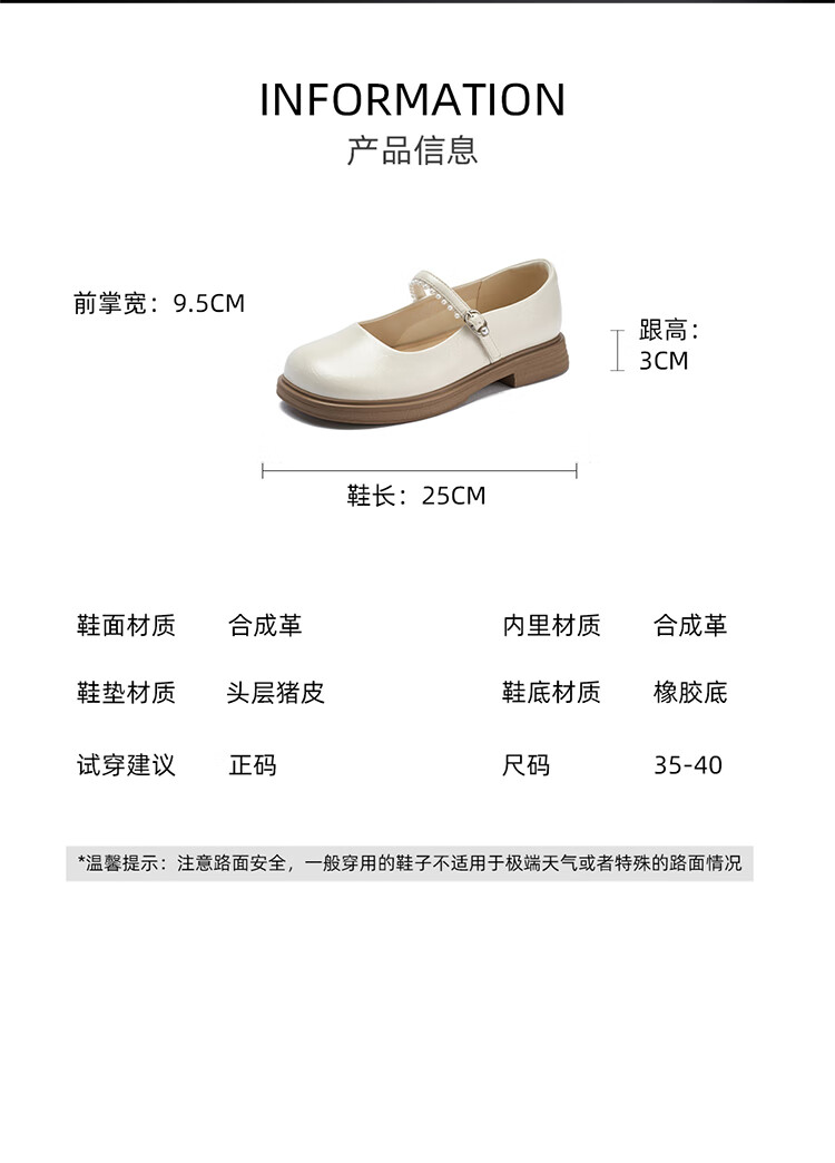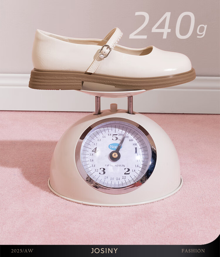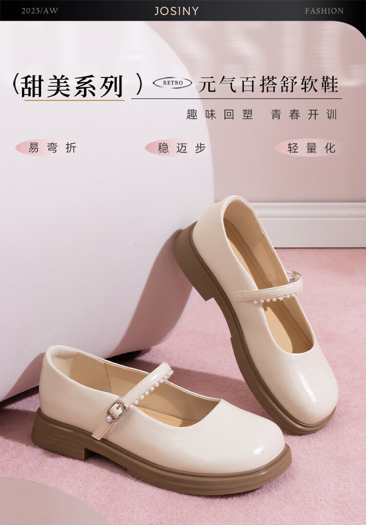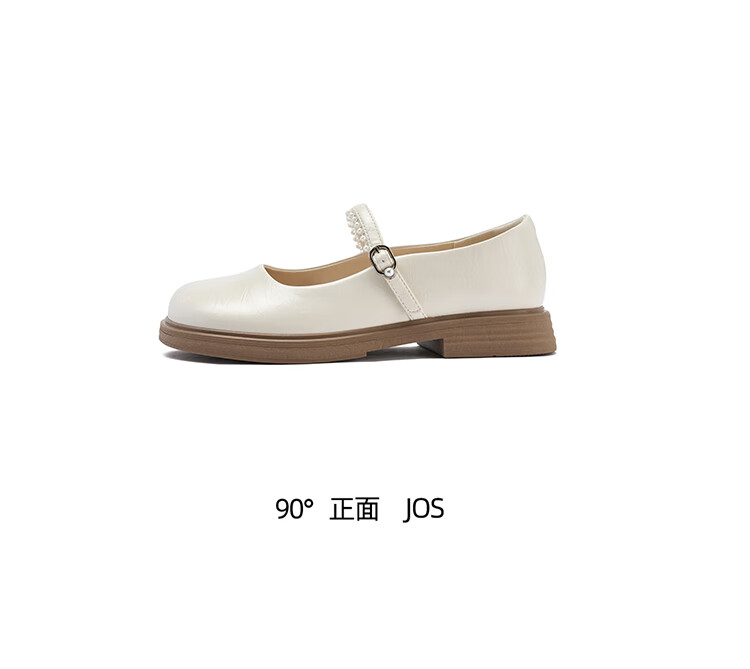 卓诗尼粗跟蕾丝玛丽珍鞋2025秋新款法式圆头平底浅口单鞋女鞋 米白色 36