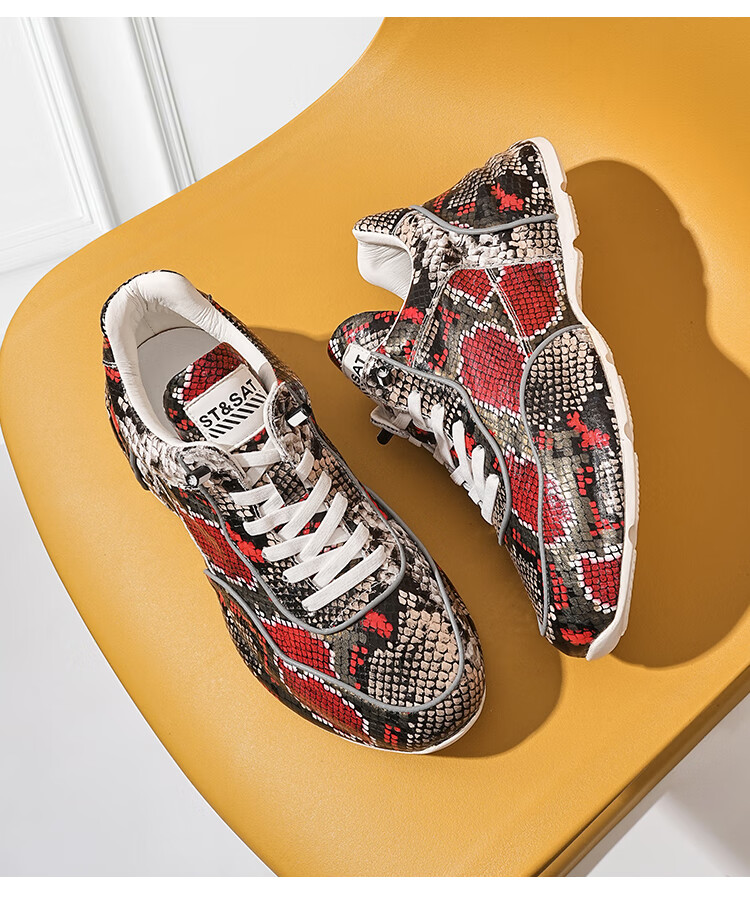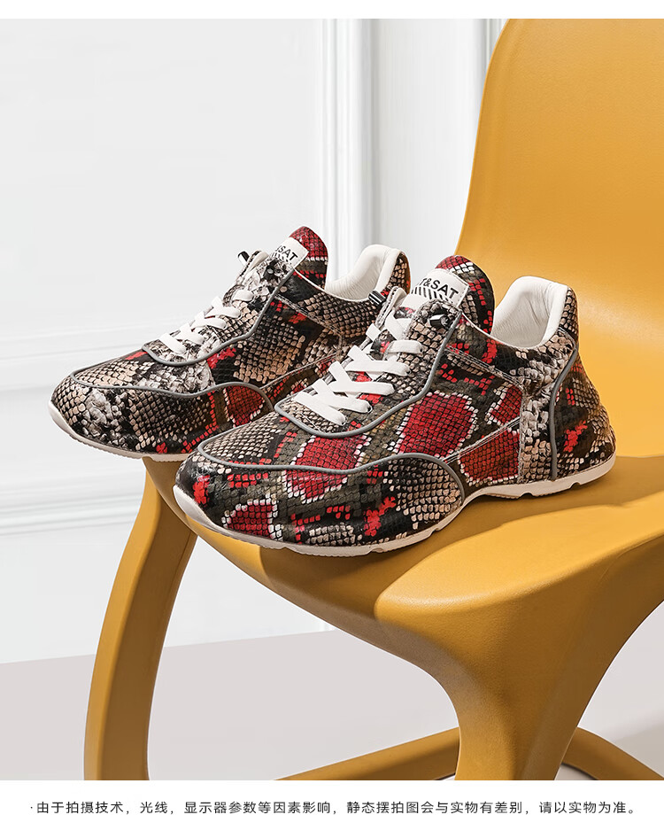 大东老爹鞋女鞋2025年秋季新款时尚潮流休闲鞋拼接5015 米红色 35