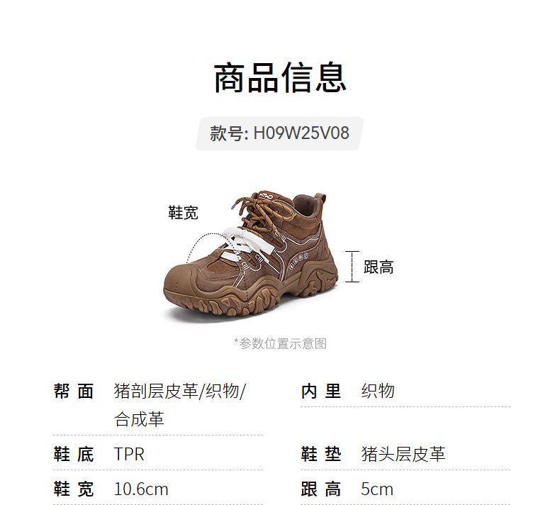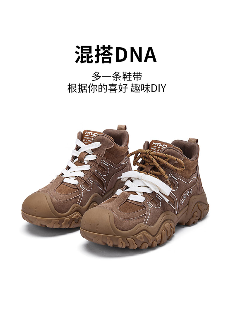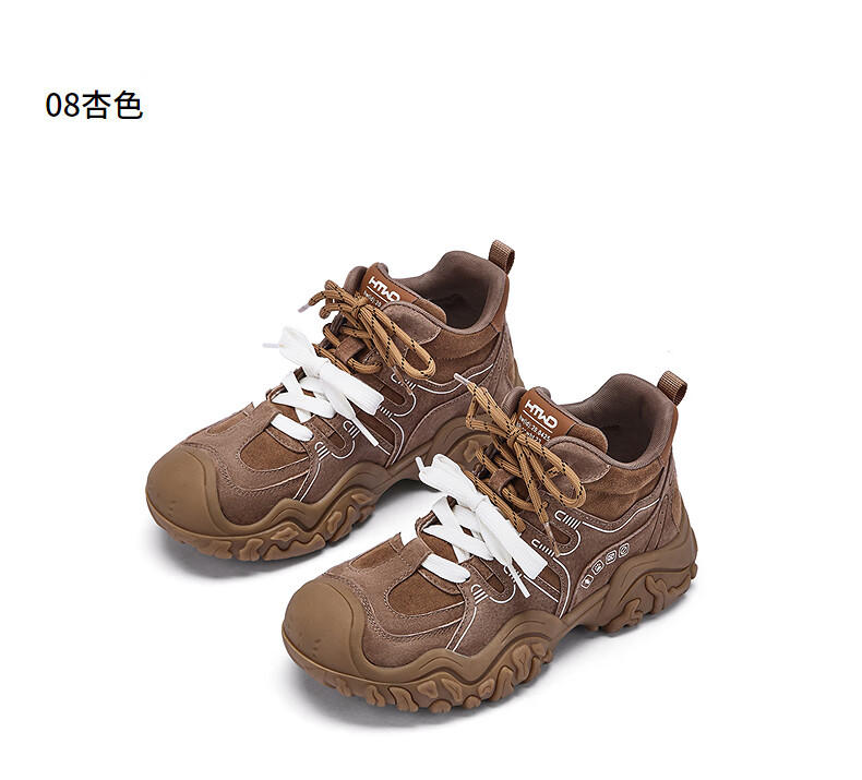 热风复古德训鞋女款2025年秋季新款高帮户外休闲运动鞋美拉德百搭女鞋 08杏色 34