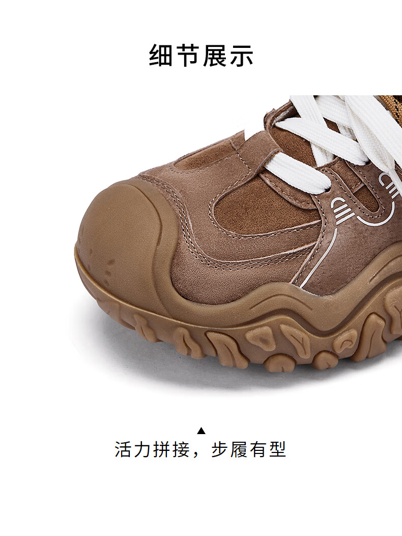 大东老爹鞋女鞋2025年秋季新款时尚潮流休闲鞋拼接5015 米红色 35
