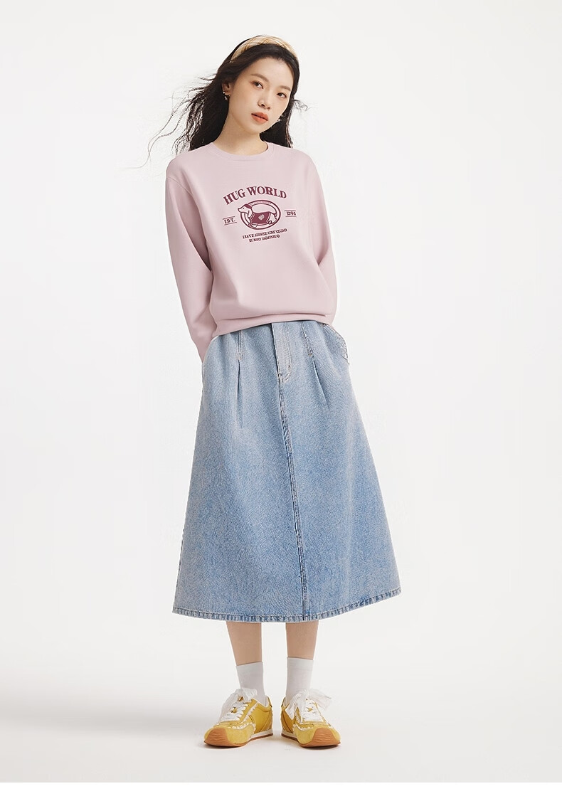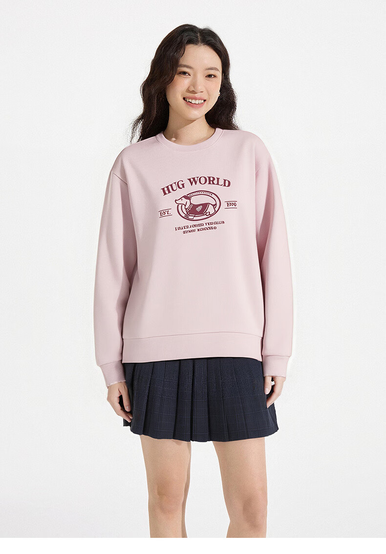 热风2025年秋季新款女士字母小狗圆领卫衣 14粉红 S
