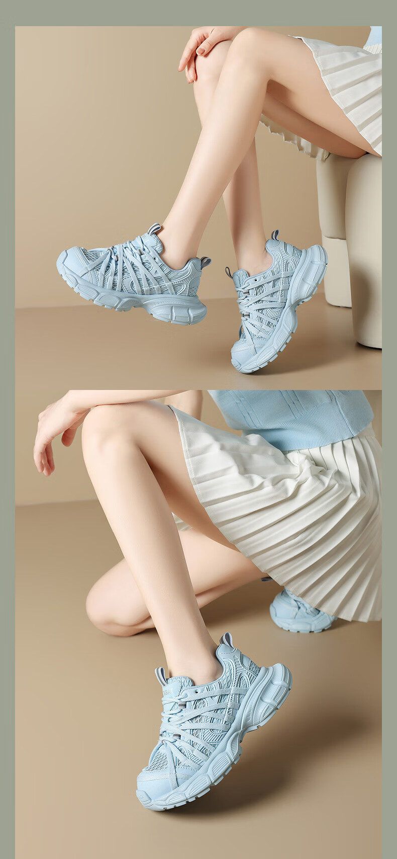 马克华菲德训鞋女2025夏季新款厚底增高透气运动鞋百搭休闲板鞋 白绿 37